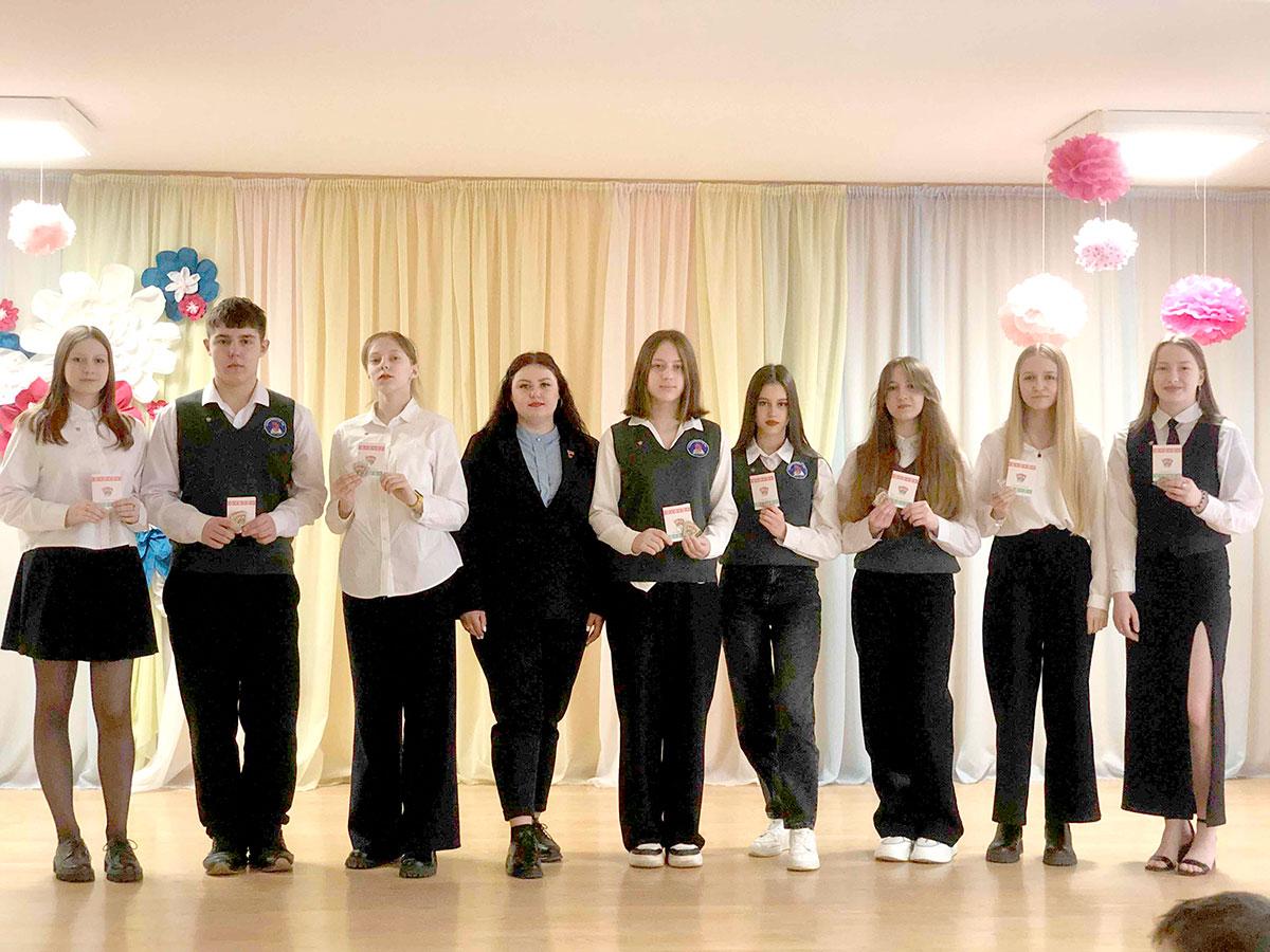 Первичная организация Белорусского республиканского союза молодежи школы 13 марта пополнилась восемью новыми членами. Документы о принадлежности юношей и девушек к молодежной организации ребятам вручила первый секретарь РК ОО «БРСМ» Наталья Судиловская. Их обладателями стали учащиеся 9 — 10 классов.
