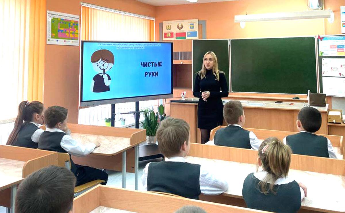 В рамках акции «Чистые руки» валеолог районного центра гигиены и эпидемиологии Виктория Краснова рассказала четвероклассникам о важности профилактики кишечных инфекций.