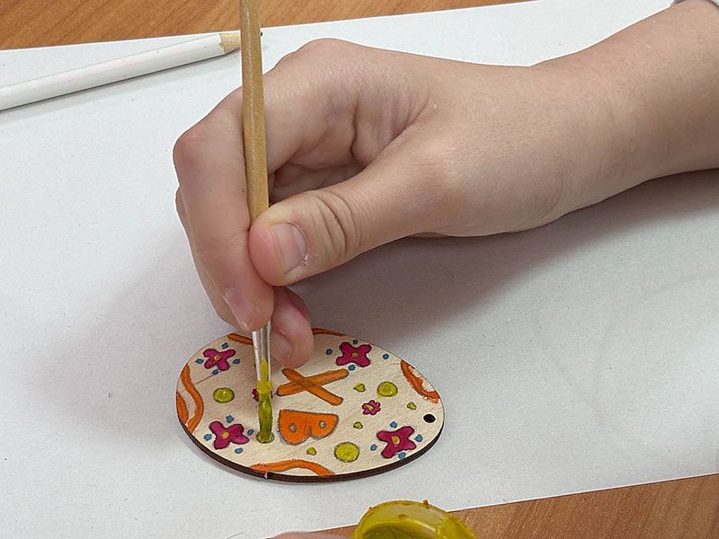 Школьникам предложили самим расписать деревянные заготовки. Кто-то работал по эскизам, были и те, кто создавал свое, уникальное «яйцо».