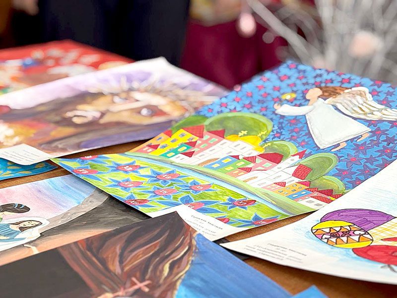 В читальном зале были представлены работы учащихся детской школы изобразительных искусств (от 10 до 15 лет), подготовленные на Международный конкурс детского рисунка «Пасхальное чудо-2025», проходящий в Турции. На рисунках изображены сюжеты по библейской истории из Евангелия.