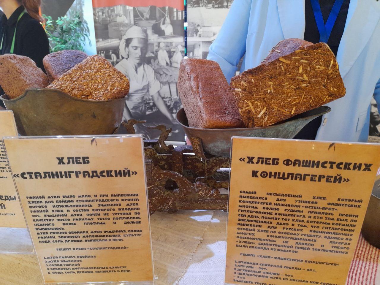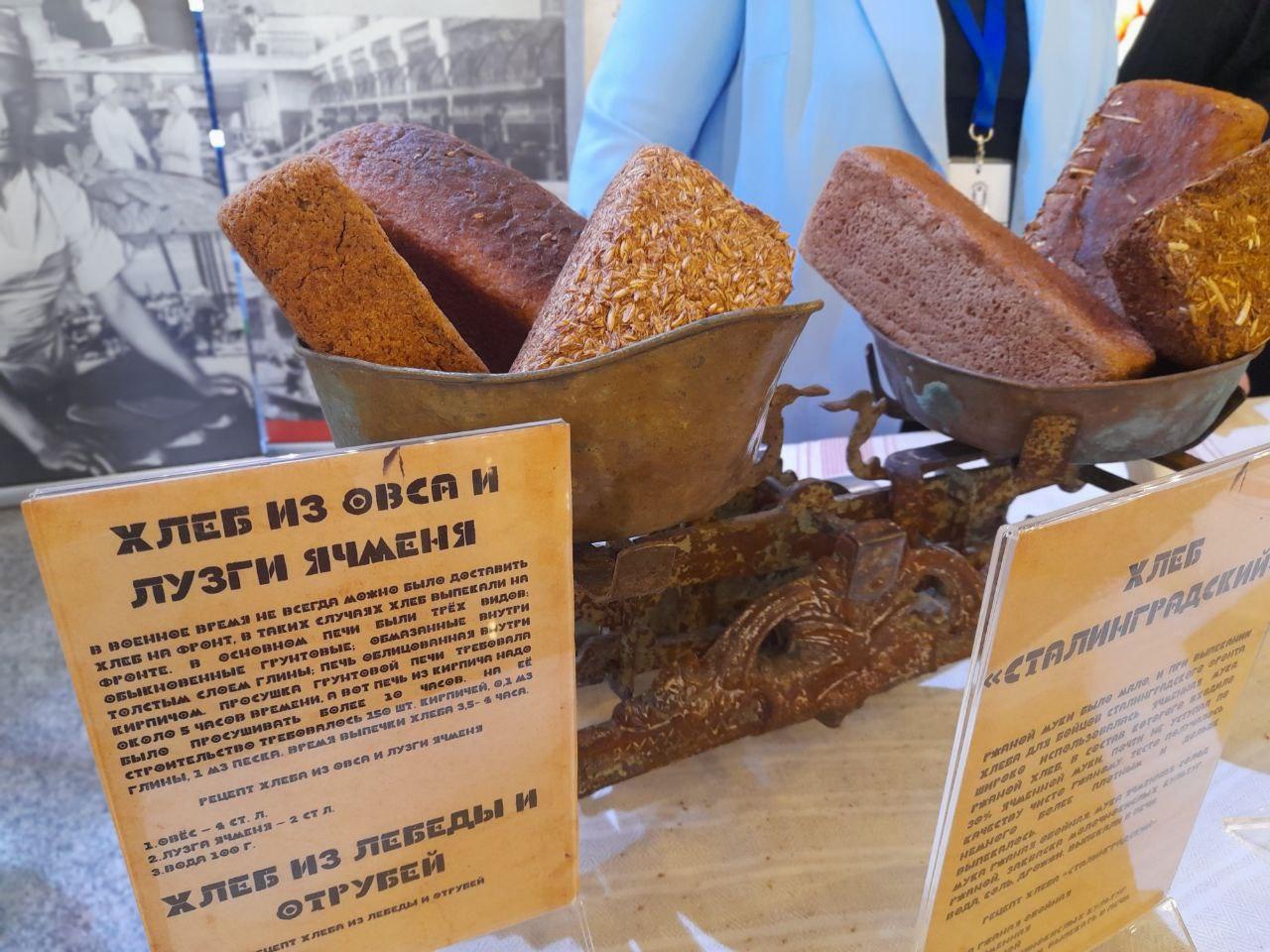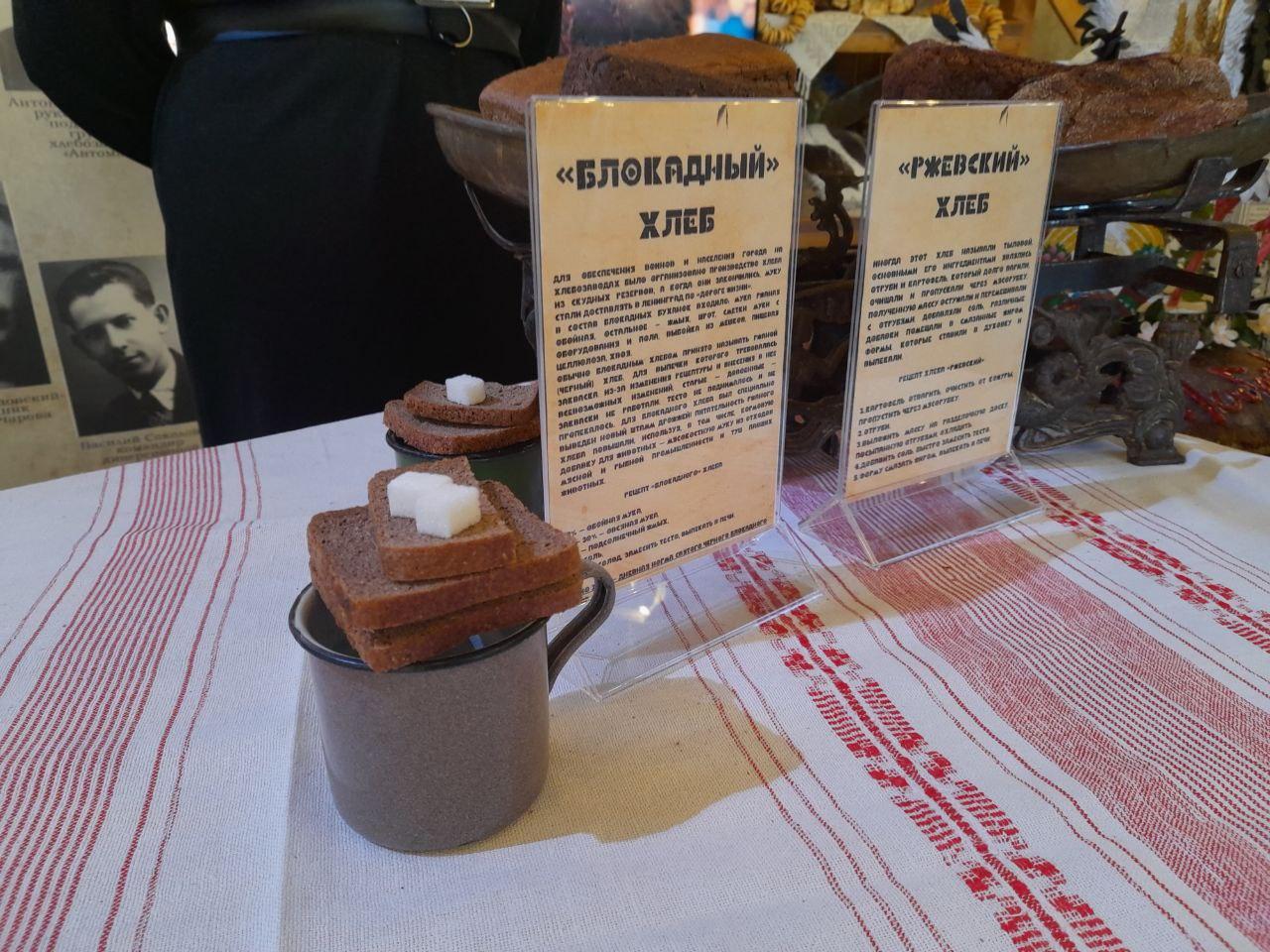 Участникам выставки показали и хлеб, который пекли в блокадном Ленинграде. Всего было представлено 5 военных видов главного продукта. Желающие могли взять кусочки военного хлеба с собой домой. Чтобы показать близким.