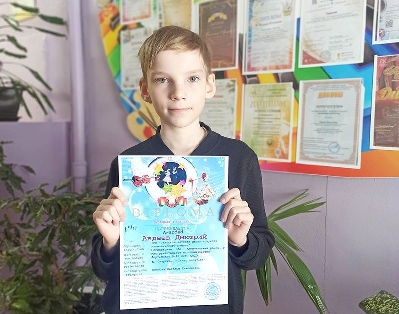 Ученик Натальи Осиповой Дмитрий Авдеев (класс «фортепиано») покорил IX Международный конкурс искусств «Talented Kids» г. Минск. Его результат — Диплом I степени!