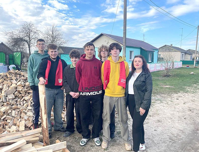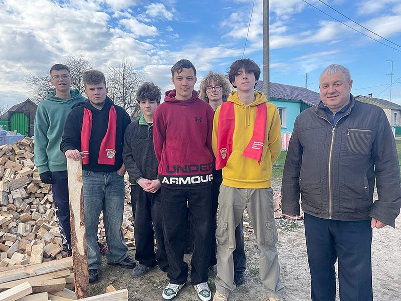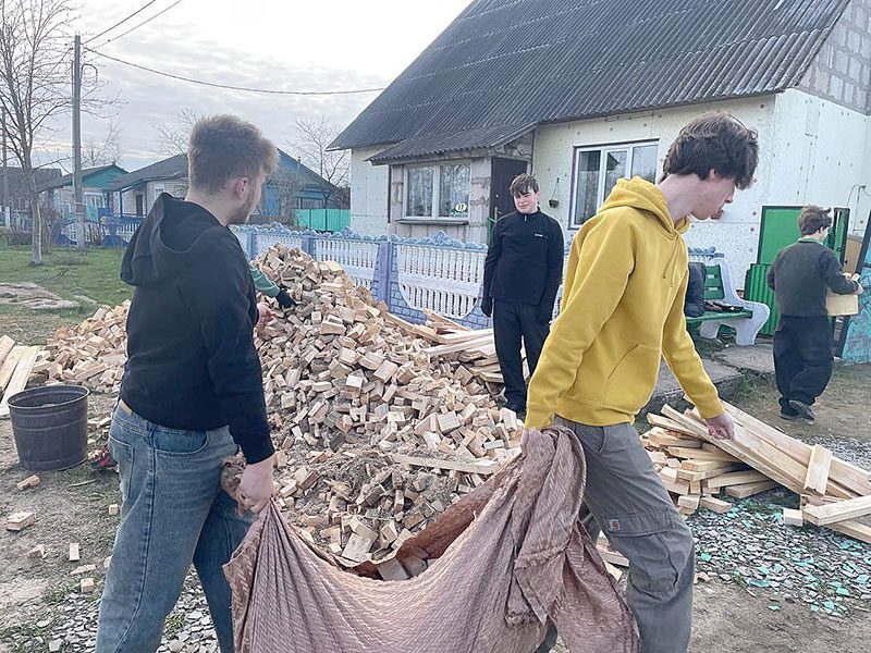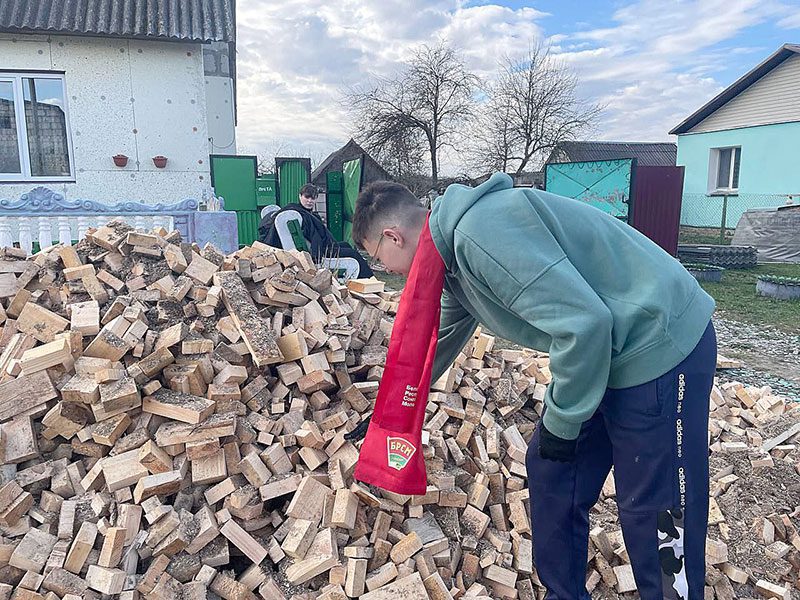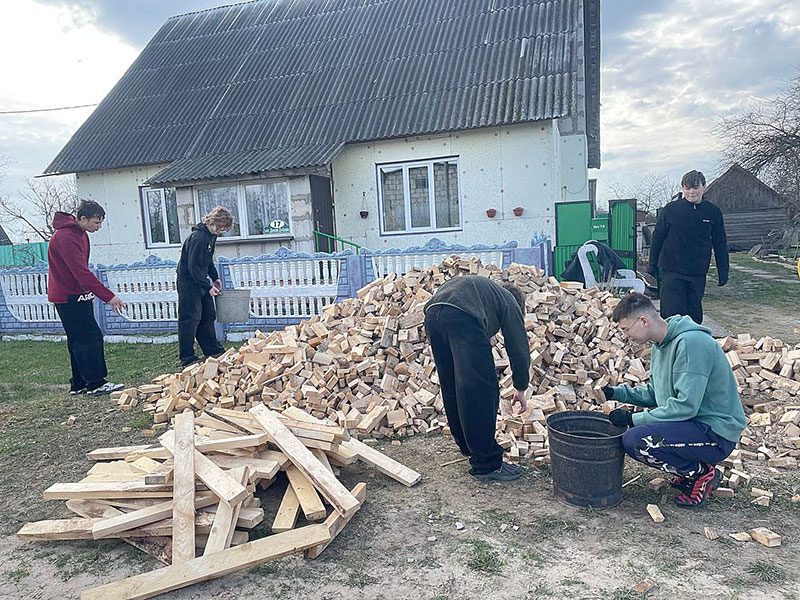 Под руководством руководителя военно-патриотического воспитания ГУО «Средняя школа № 3 г. Климовичи» Александра Волкова и председателя райкома ОО «БРСМ» Натальи Судиловской ребята быстро перенесли твердое топливо с улицы во двор, где аккуратно его сложили.