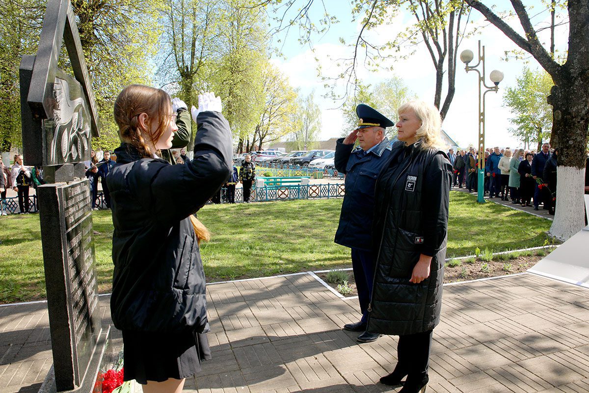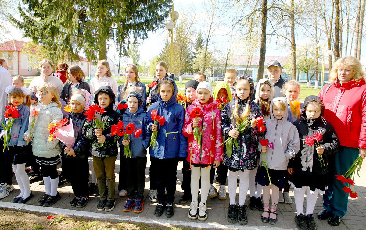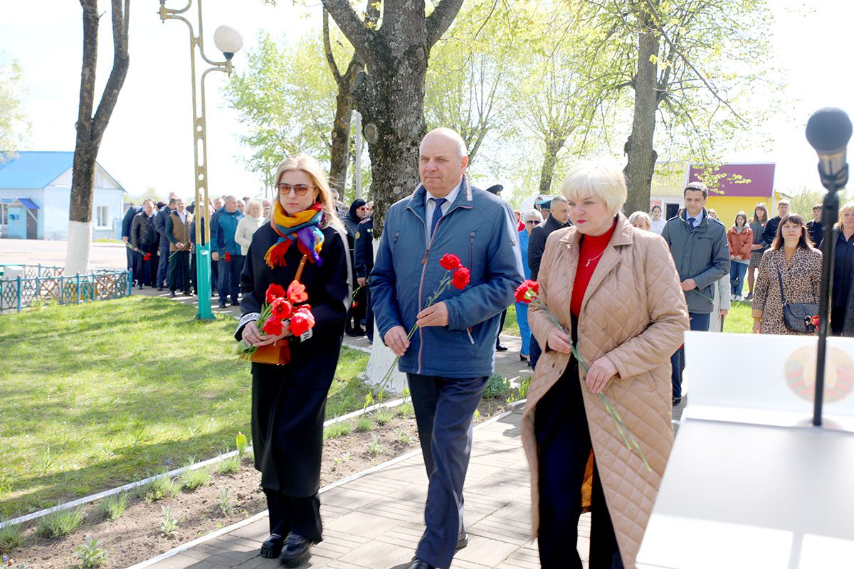 По традиции представители органов власти, трудовых коллективов, общественности возложили цветы к памятному знаку захороненных и отселенных в результате катастрофы на Чернобыльской АЭС деревень.