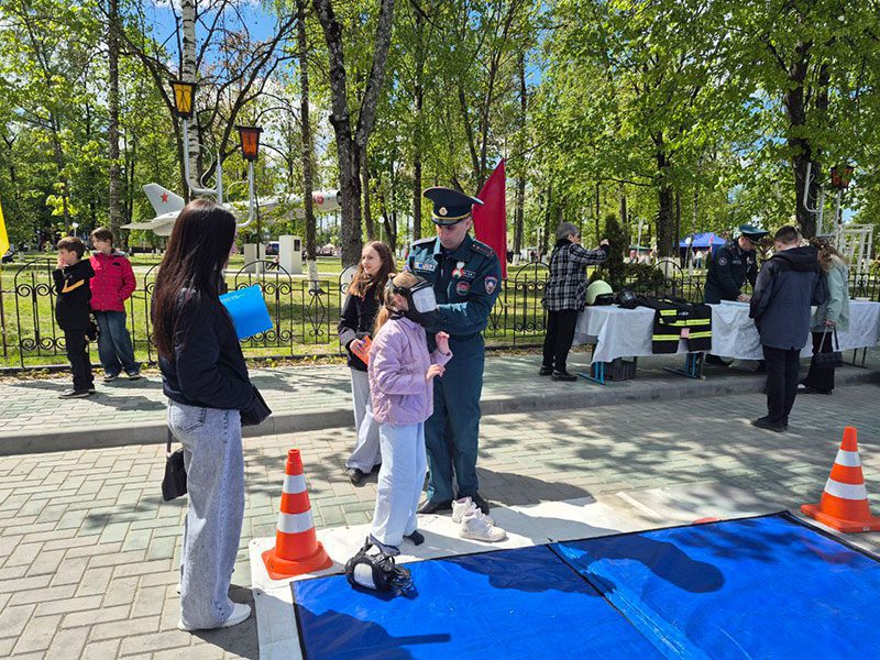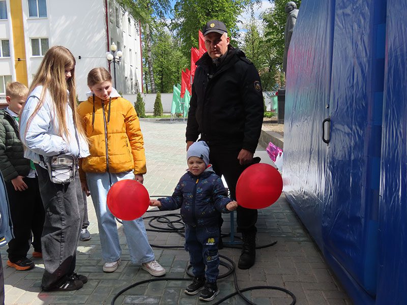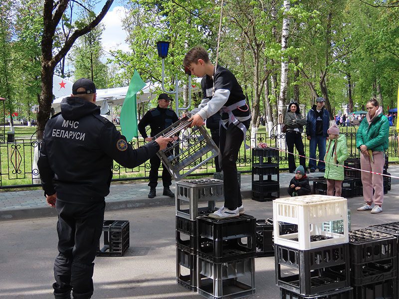 Климовчане празднуют 80-летие Победы советского народа в Великой Отечественной войне. Для земляков работает тематическая площадка Климовичского районного отдела по чрезвычайным ситуациям.