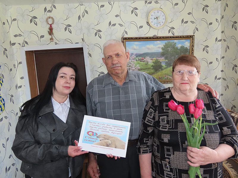 В преддверии Дня семьи супружескую пару Людмилу Ивановну и Михаила Михайловича Стебиховых посетила заведующий отделением социальной помощи на дому Ирина Стефаненко. Она подарила им цветы и поздравительную открытку. Ирина Жоржевна пожелала супругам здоровья, долгих лет жизни.