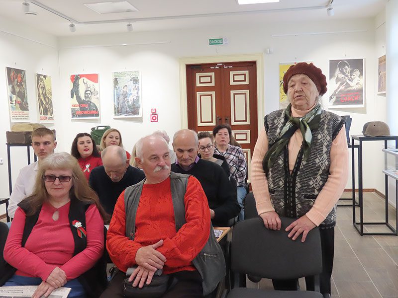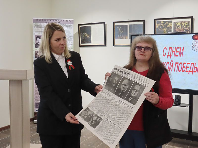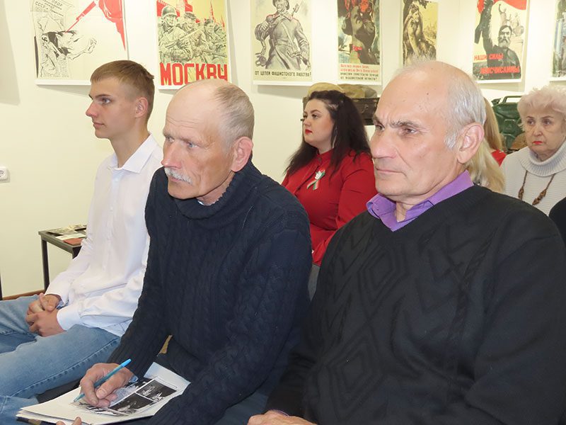 Главный хранитель фондов Наталья Банышевская рассказала присутствовавшим о том, как формировалась выставка благодаря участию климовчан. Они поделились предметами, документами, фотоматериалами, личными вещами дедушек и бабушек — участников Великой Отечественной войны, которые теперь могут увидеть посетители музея. Наталья Васильевна напомнила собравшимся о событиях войны, которые происходили на Климовщине.
