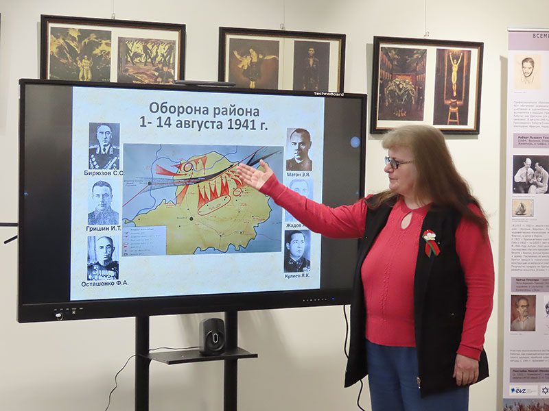 Об экспонатах, которые представлены на выставке, рассказала Валентина Викторовна Осмоловская — сестра участника Великой Отечественной войны Алексея Викторовича Осмоловского. Ее рассказ дополнил родственник Сергей Федорович Осмоловский.