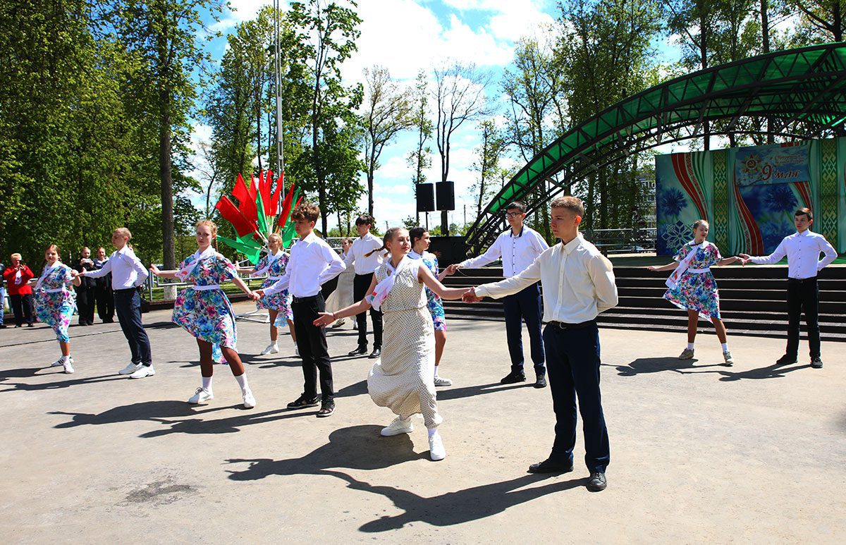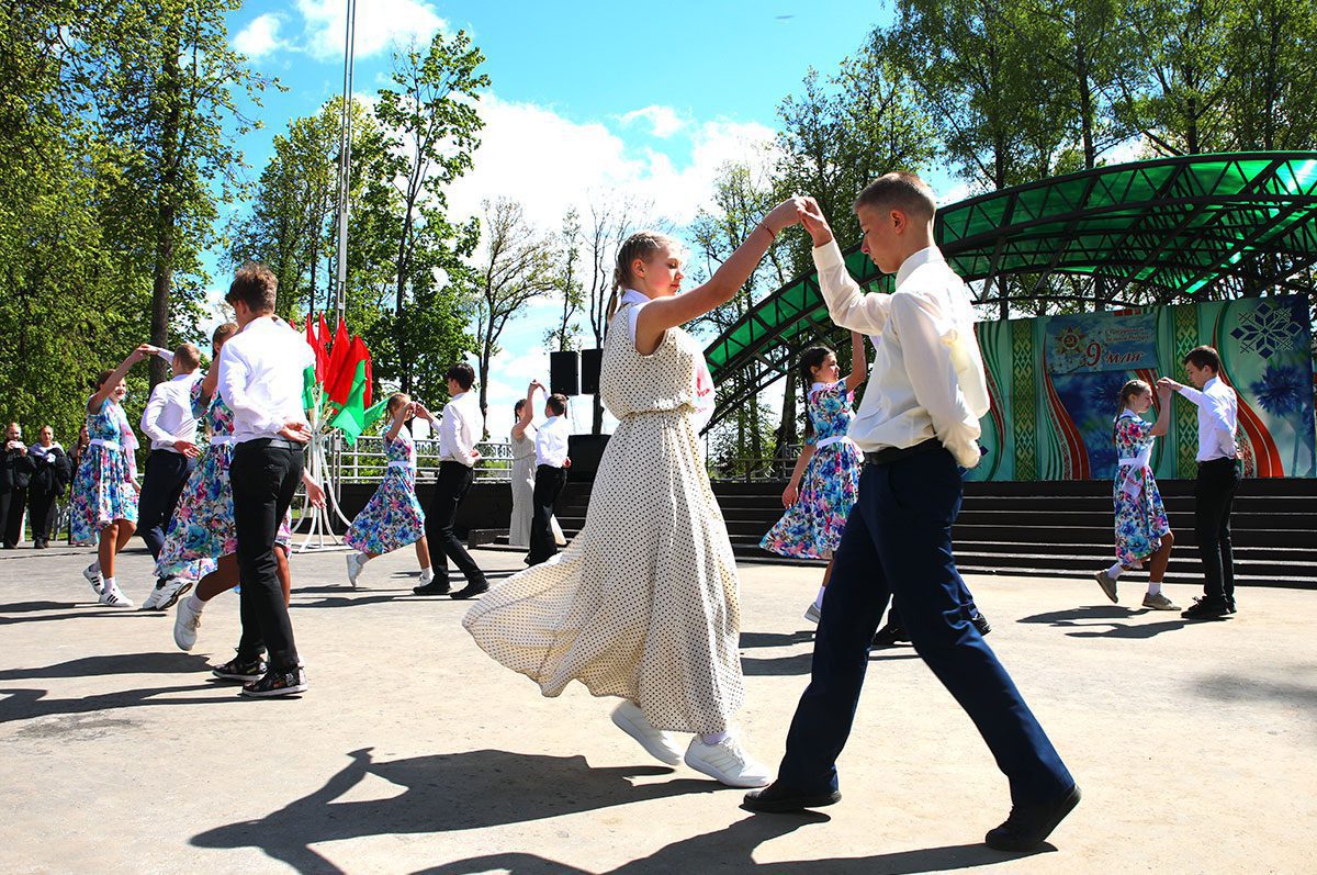 В Климовичах продолжаются торжества, посвященные 80-летию Великой Победы. Одним из самых трогательных и символичных мероприятий стал «Вальс Победы» в парке Народного единства.