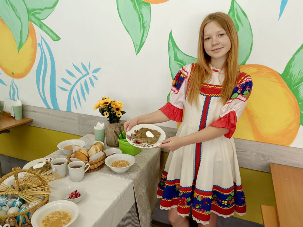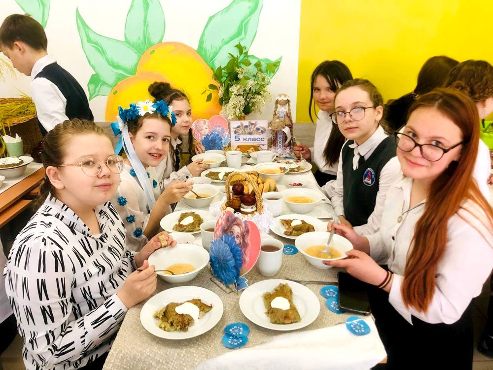 Особый интерес вызвал День белорусской кухни, где старшеклассники сервировали столы в национальном стиле, а повара приготовили традиционные блюда: картофельную бабку, борщ и кисель. В конкурсе «Друг познается в еде!» дети с аппетитом пробовали блюда из школьного меню.