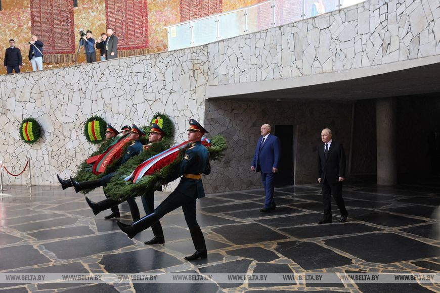 Но начал свой визит Александр Лукашенко с посещения самого знакового места в городе — историко-мемориального комплекса «Героям Сталинградской битвы» на Мамаевом кургане. Президенты возложили венки в Зале Воинской славы и цветы к могиле маршала Советского Союза Василия Чуйкова — легендарного командующего 62-й армией, которая прославилась героической шестимесячной обороной Сталинграда.