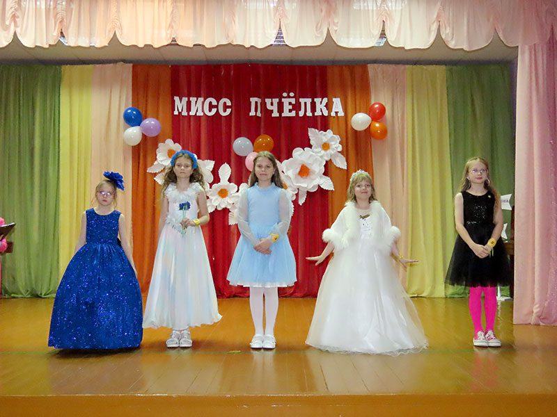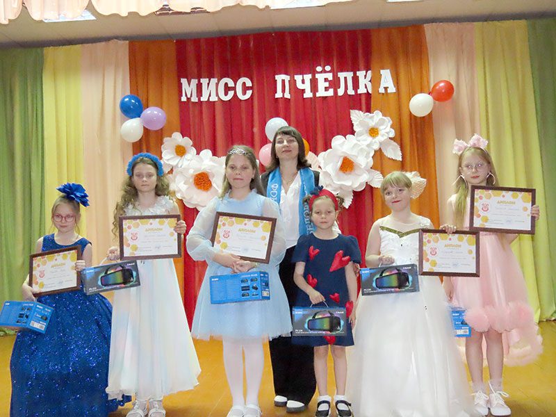 А теперь внимание! «Мисс Элегантность» — Варвара Лукьяненко; «Мисс Очарование — Виктория Болотина; титул «Мисс Артистичность» получила Мария Мушуруева; а вот и сама «Мисс Грация» Дарья Карпова. И заслуженный титул «Мисс «Золотая пчелка — 2025» достается Анастасии Королёвой.