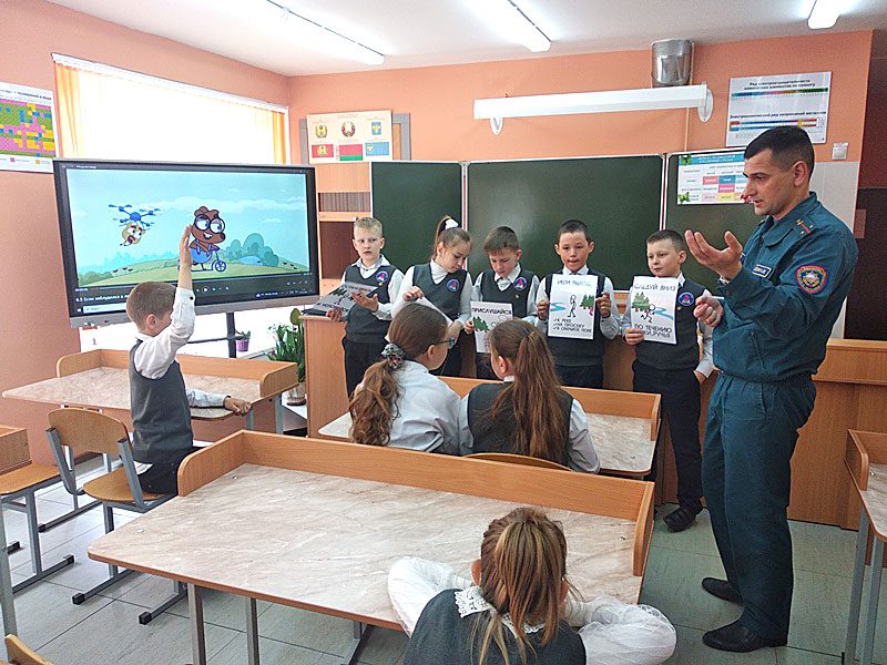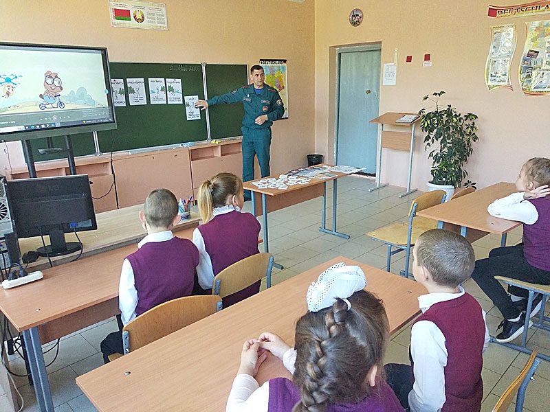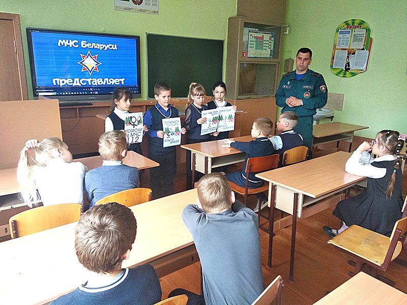 Работники Климовичского РОЧС регулярно проводят обучающие мероприятия в учебных заведениях района. В этот раз спасатели пришли в гости к ученикам 1 — 4 классов Милославичской, Тимоновской средних школ, а также Звенчатской базовой школы Климовичского района.
