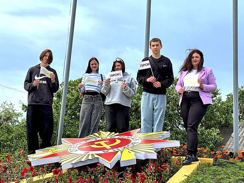 Тематическая клумба создана в рамках Года благоустройства и Областного проекта БРСМ «Цвети, Великий май! Символ Победы в цветах». Завершение оформления провели активисты БРСМ во главе с первым секретарем райкома ОО «БРСМ» Натальей Судиловской.