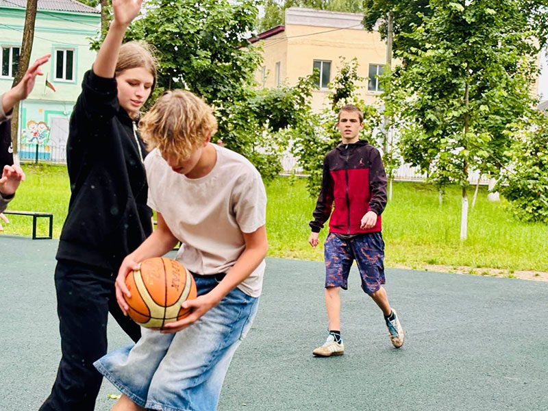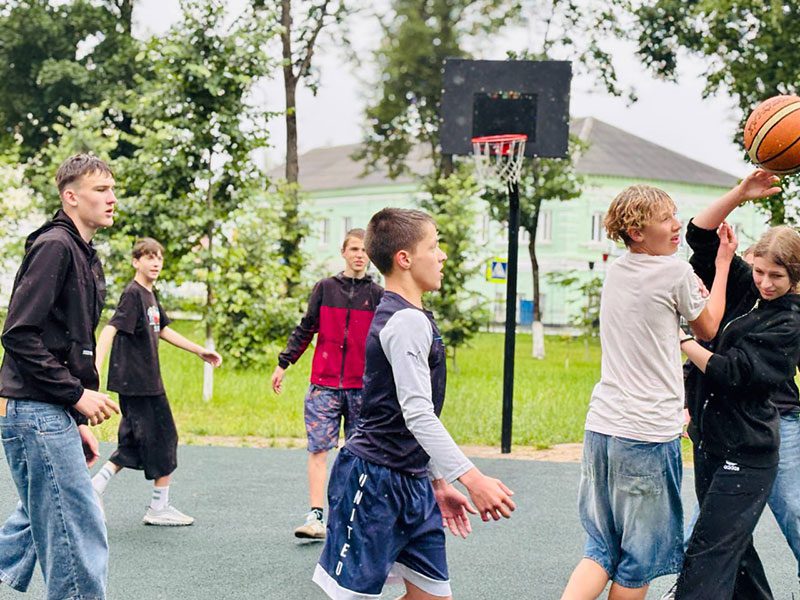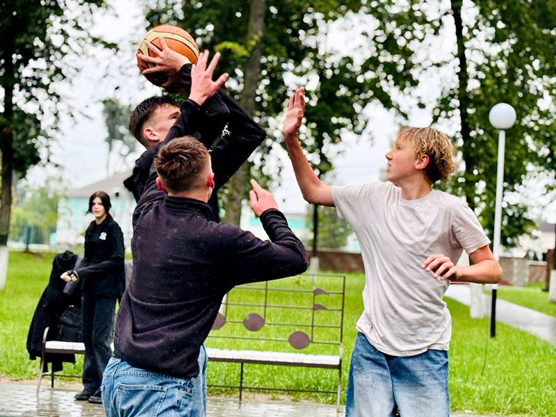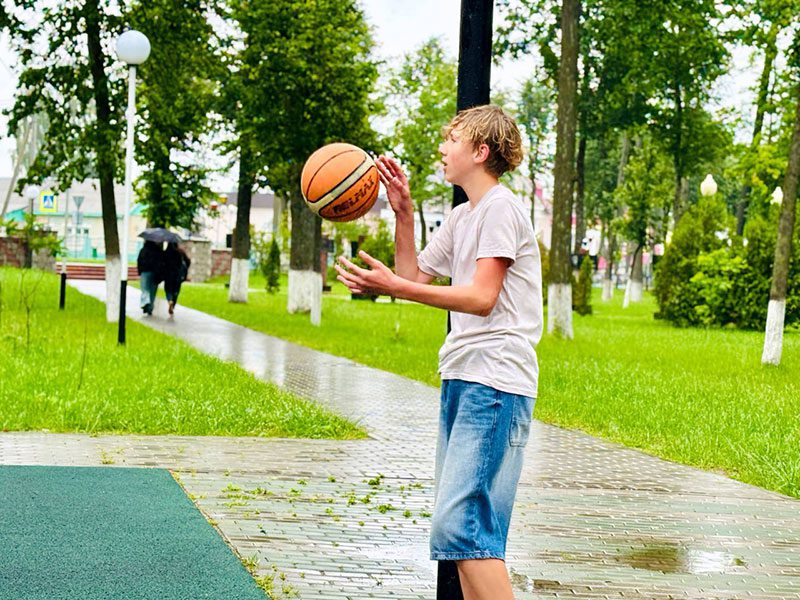 Несмотря на капризы погоды, климовчане с удовольствием гоняли мяч и с точностью профессиональных баскетболистов отправляли его в кольцо.