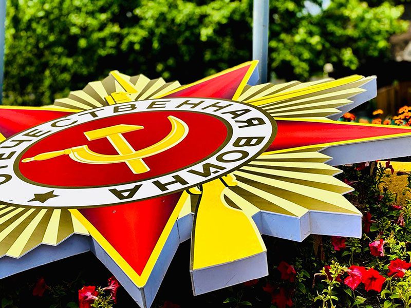 На перекрестке улиц Болдина и Ленина в Климовичах появилась уникальная тематическая клумба, посвященная 80-летию Победы советского народа в Великой Отечественной войне.