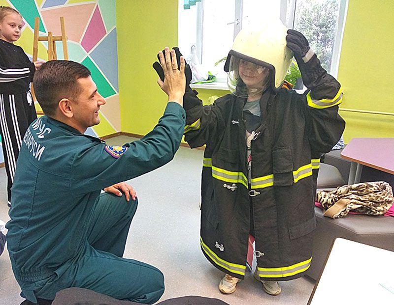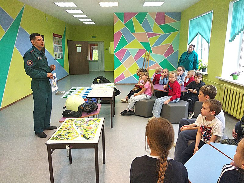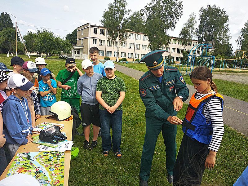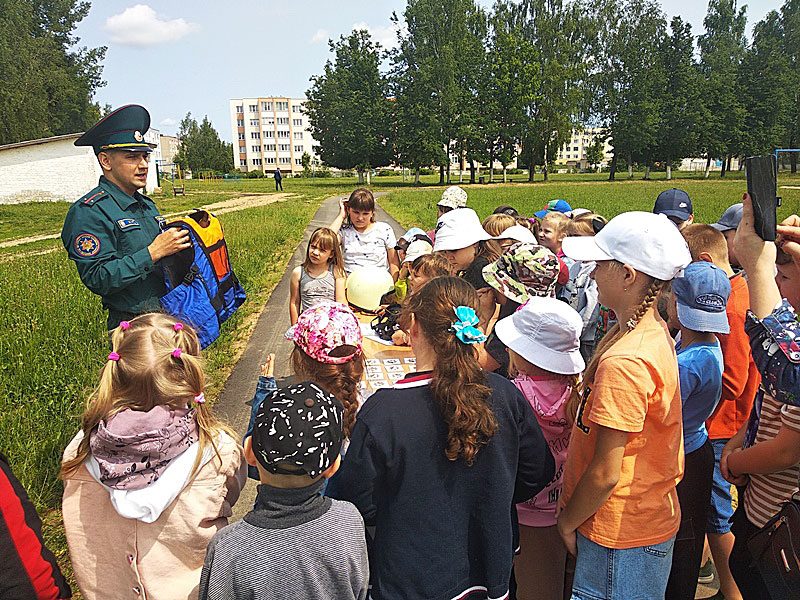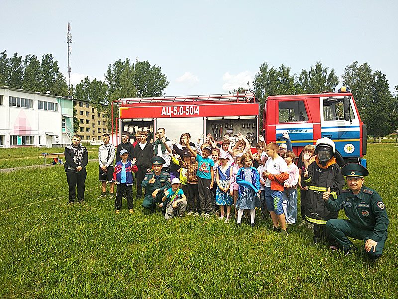 Ребята из пришкольных лагерей районной государственной гимназии, средней школы № 4 и Тимоновской средней школы принимали гостей. А пришли к ним с визитом работники Климовичского РОЧС.
