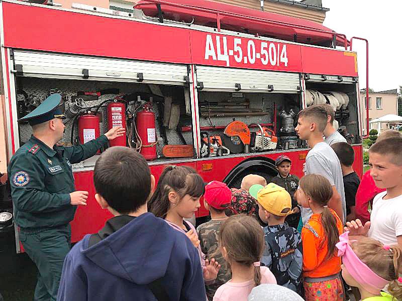 Во время встреч спасатели рассказывали ребятам о безопасности во время летних каникул. Разговор касался правильного поведения на воде и в лесу, при грозе. В игровой форме с детьми повторили номера телефонов экстренных служб, алгоритм вызова спасателей, изучили шаги спасения при чрезвычайных ситуациях, правила эвакуации.