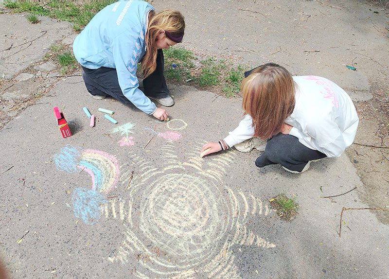 А еще с ними немного порисовали на асфальте. Цветные мелки помогли детям отобразить свое настроение.