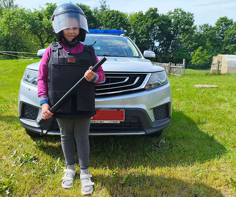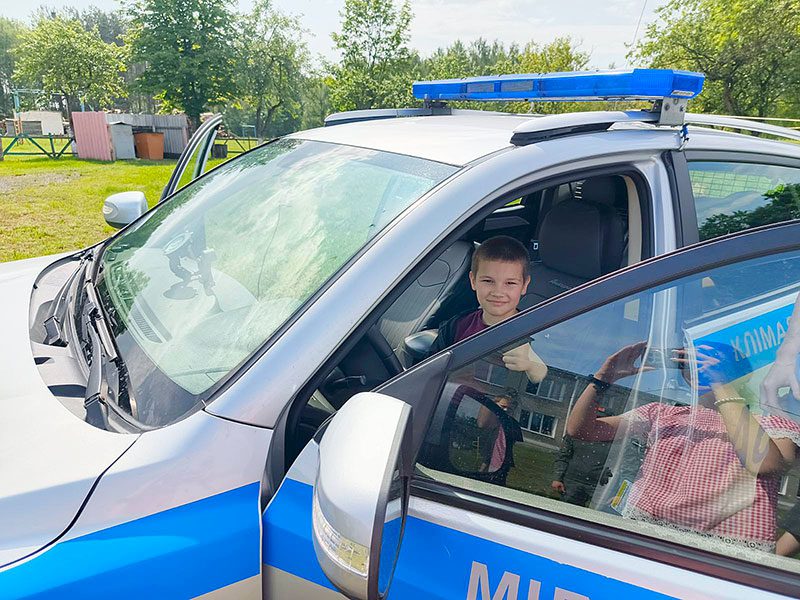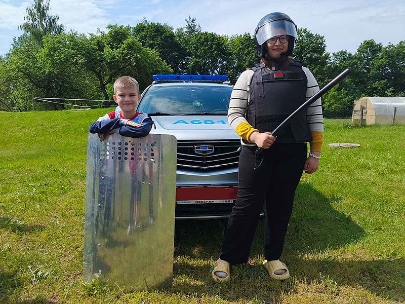 А еще взрослые подготовили для детей игровую программу. Ребята с интересом примеряли милицейскую форму и снаряжение, общались с милиционерами.