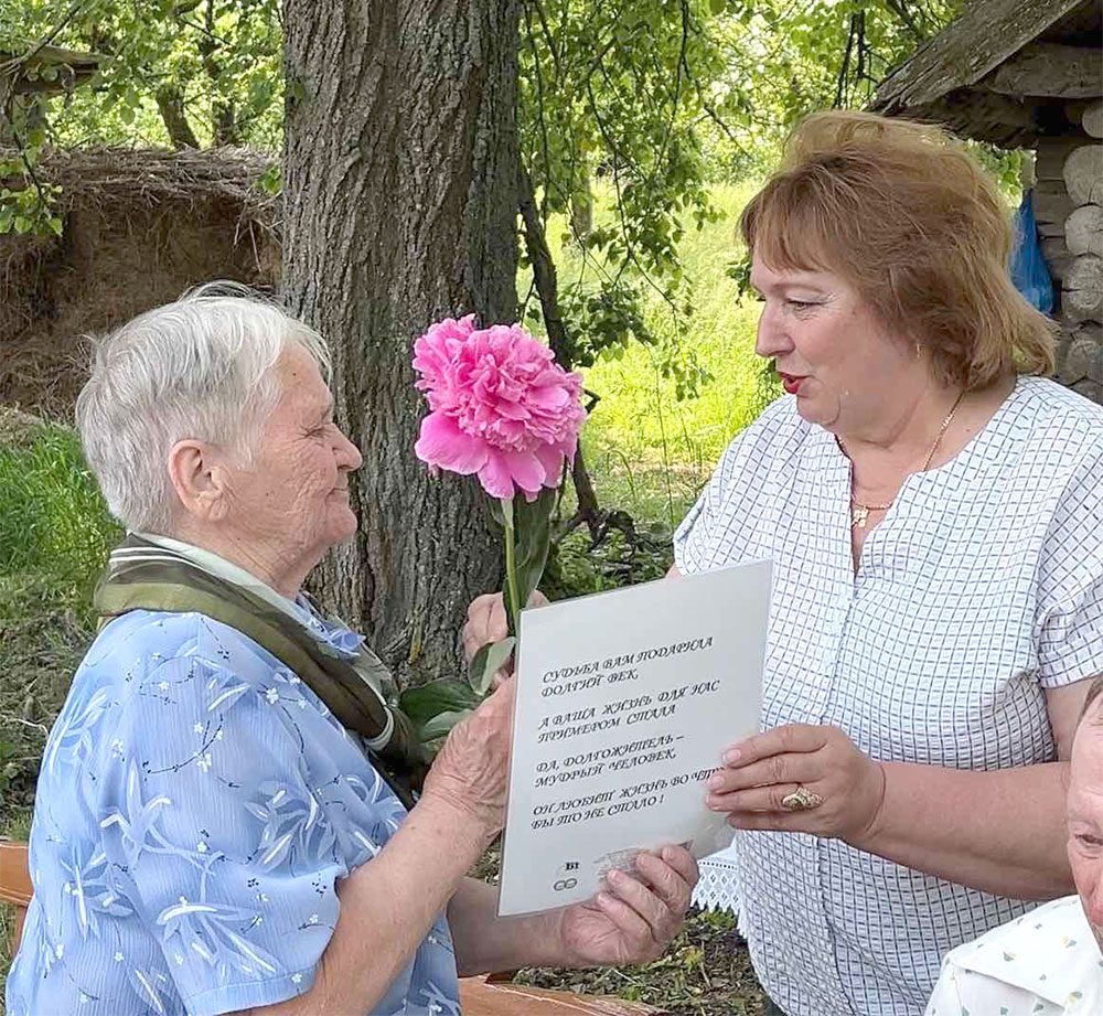 Депутат Лобжанского сельского Совета депутатов Елена Михайловна Кочергина вручила старожилам Благодарственные письма сельисполкома. Также Благодарность была вручена Галине Ивановне Подчалиной, которая много лет являлась старостой деревни. Вместе с наградами женщины получили и букеты цветов.