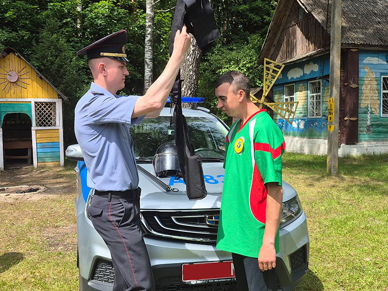 Примерить бронежилет, шлем участники слета могли у сотрудников Климовичского отдела Департамента охраны. Конечно же, незабываемое впечатление произвела работа служебной собаки Браско.