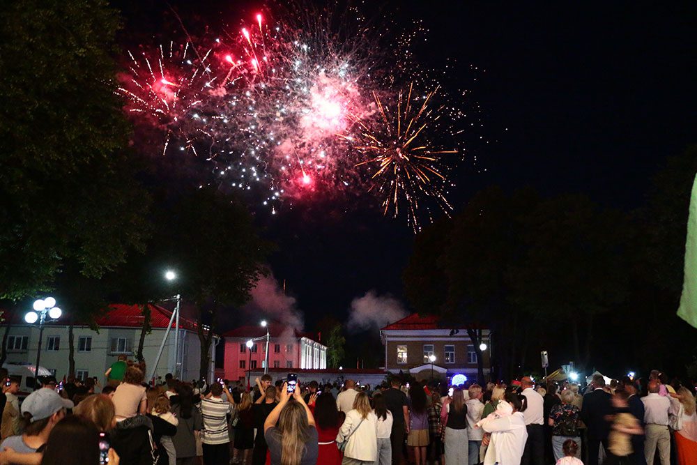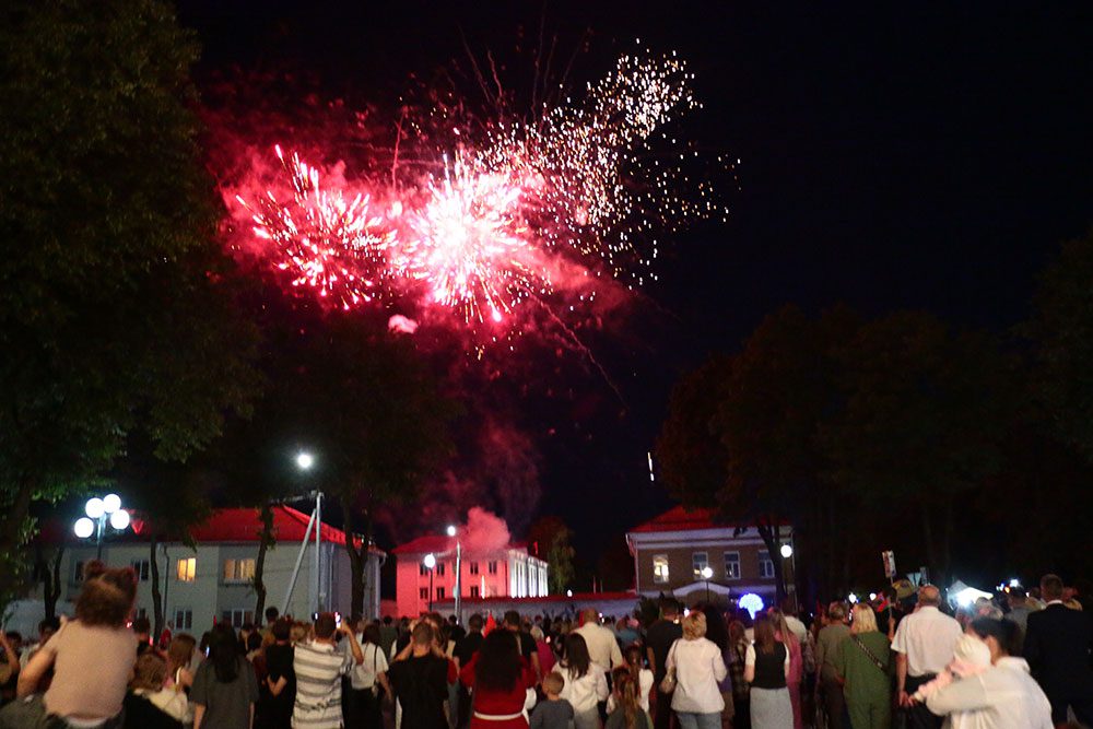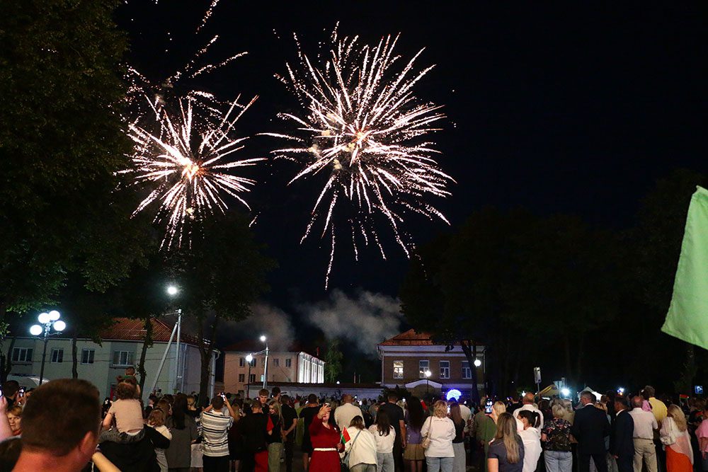 Гроздья праздничного салюта расцветили небо над Климовичами. Разноцветные искры взмывали ввысь и рассыпались под восторженные возгласы зрителей.