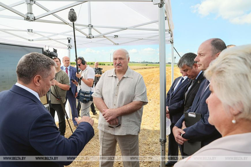 Президент приехал в сельхозпредприятие «Озерицкий-Агро» и сразу пояснил, почему было выбрано именно это место, район и область. Глава государства хотел составить общее впечатление о ходе уборочной кампании, а здесь как раз более-менее усредненные условия. Если здесь хорошо, то и в среднем по стране ситуация будет неплохая — чуть хуже по северу в Витебской области, чуть лучше на юге и в западных регионах.
