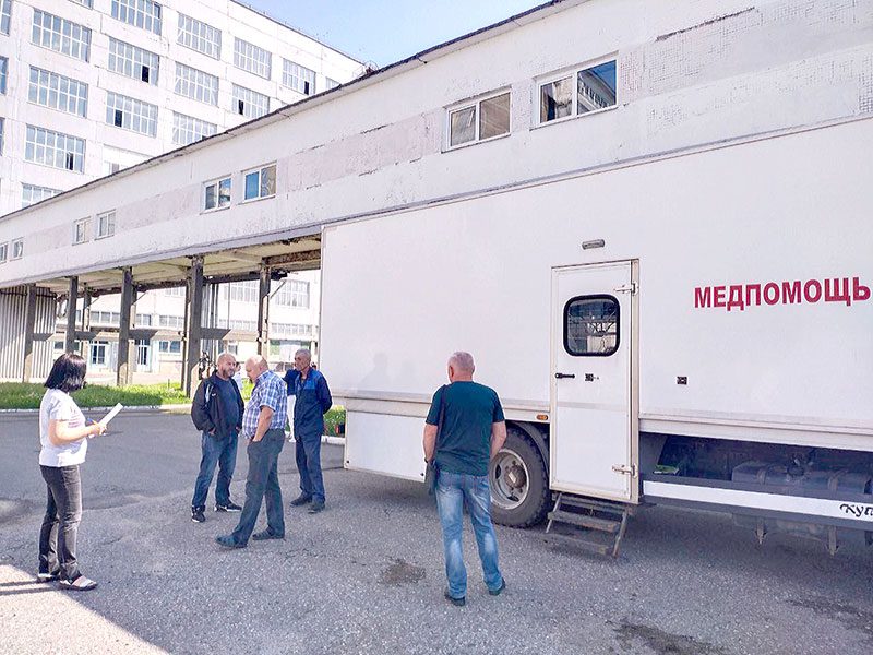 Также согласно графику передвижной фельдшерско-акушерский пункт посещает предприятия и организации города с целью осуществления диспансеризации работников.