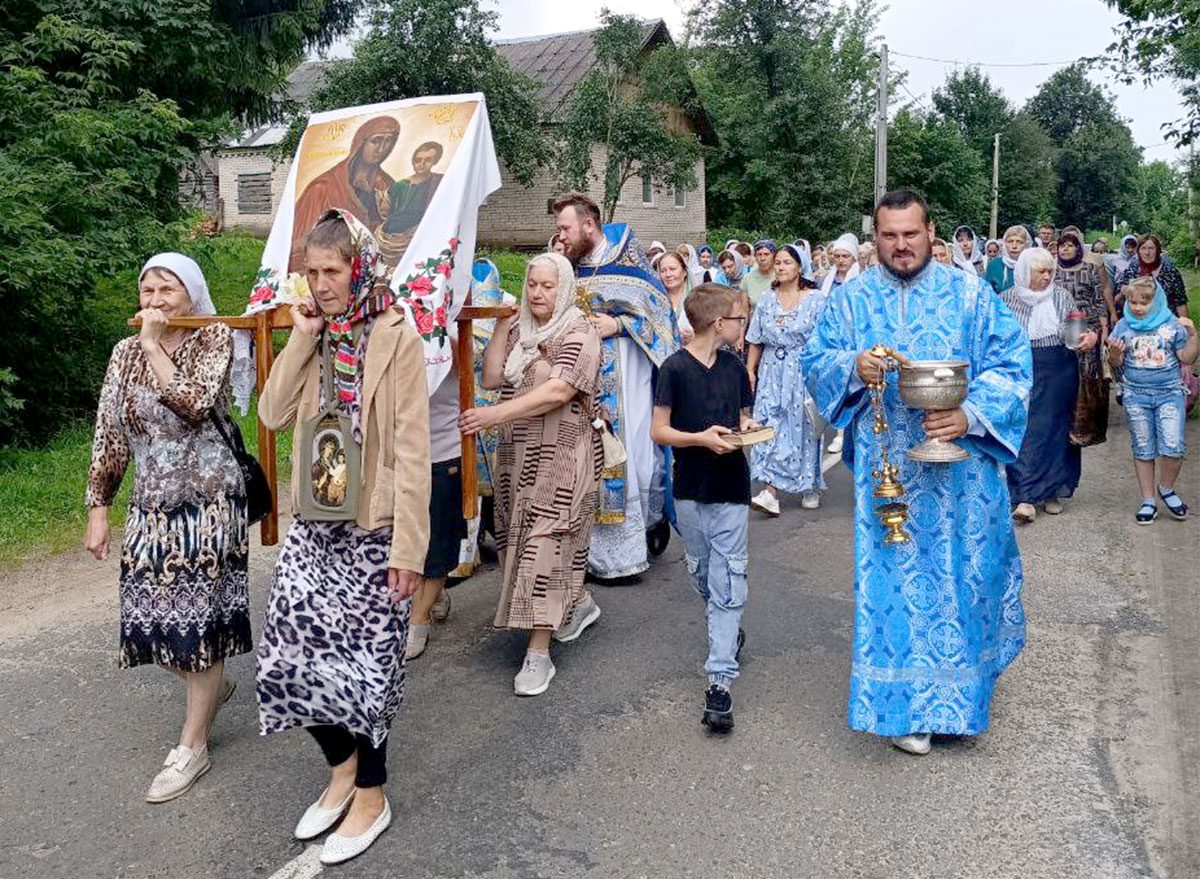 Климовчане, члены Клуба традиционных славянских ценностей, действующего при центральной районной библиотеке имени Ивана Пехтерева, вместе с руководителем клуба Ольгой Максимович в православный праздник — день Казанской иконы Божией Матери (21 июля) побывали в деревне Прусино Костюковичского района, где прошли престольные торжества Казанского храма.
