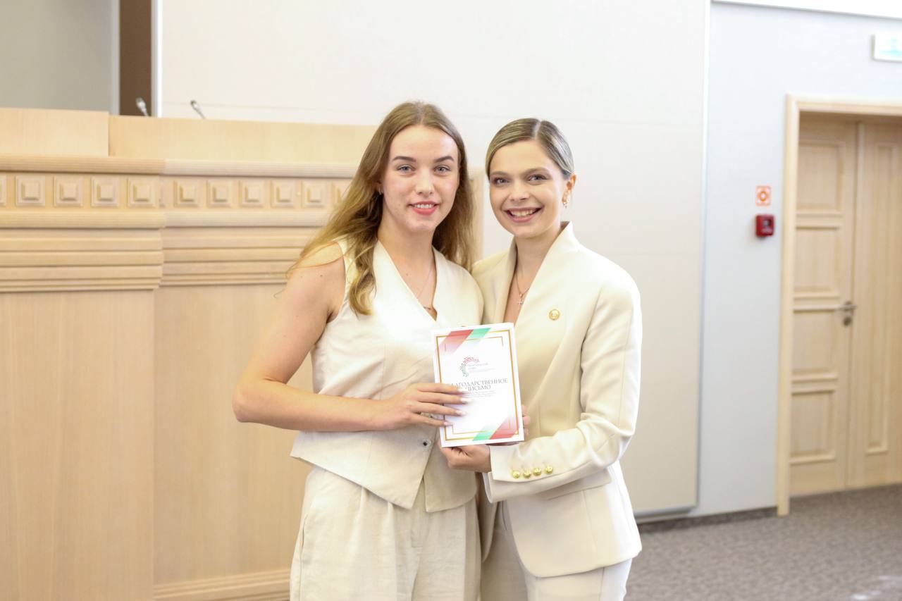 Елизавета Семченко была награждена Благодарностью Молодежного совета, которую ей вручила руководитель структуры Алина Ретькова.