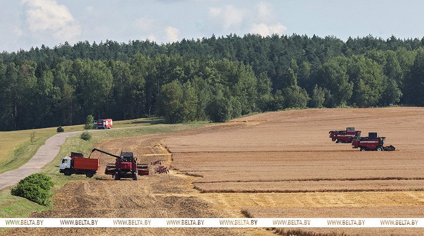 Главе государства доложили о ходе уборочной кампании в Беларуси и Минской области. Регион как раз показывает примерно среднереспубликанские темпы на уборке. Урожайность в настоящее время составляет 41,4 ц/га. По сравнению с прошлым годом это на 7,3 ц/га больше, несмотря на сложные погодные условия. Недавно аграрии отрапортовали об уборке первого миллиона тонн зерна. А по состоянию на утро 24 июля — примерно 1,1 млн т.