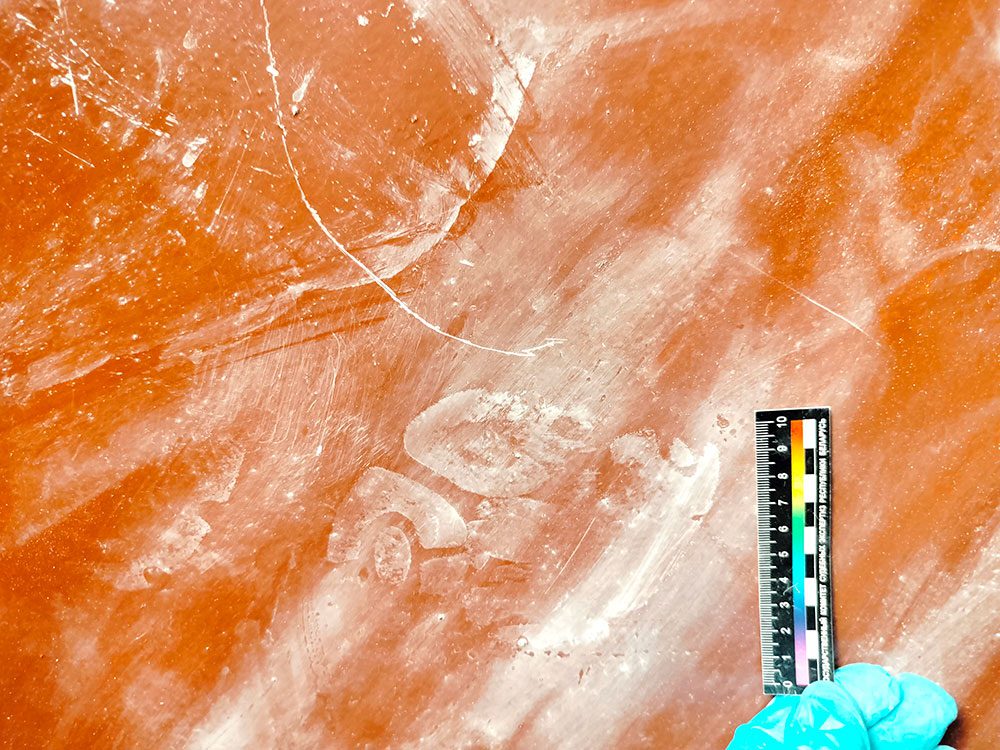 В ходе осмотра места происшествия на выбитой двери эксперт-криминалист изъял следы рук и обуви. По результатам проведенных судебных экспертиз было установлено, что следы рук совпадают с отпечатками задержанного, а следы обуви на поврежденной двери оставлены подошвой его шлепанцев.