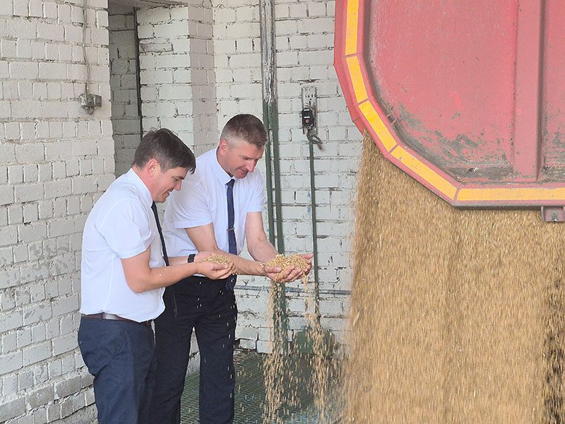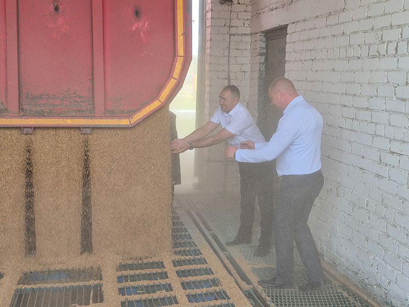 Торжественная церемония начала приемки продовольственного зерна прошла на Климовичском комбинате хлебопродуктов с участием председателя райисполкома Виктора Пугача.