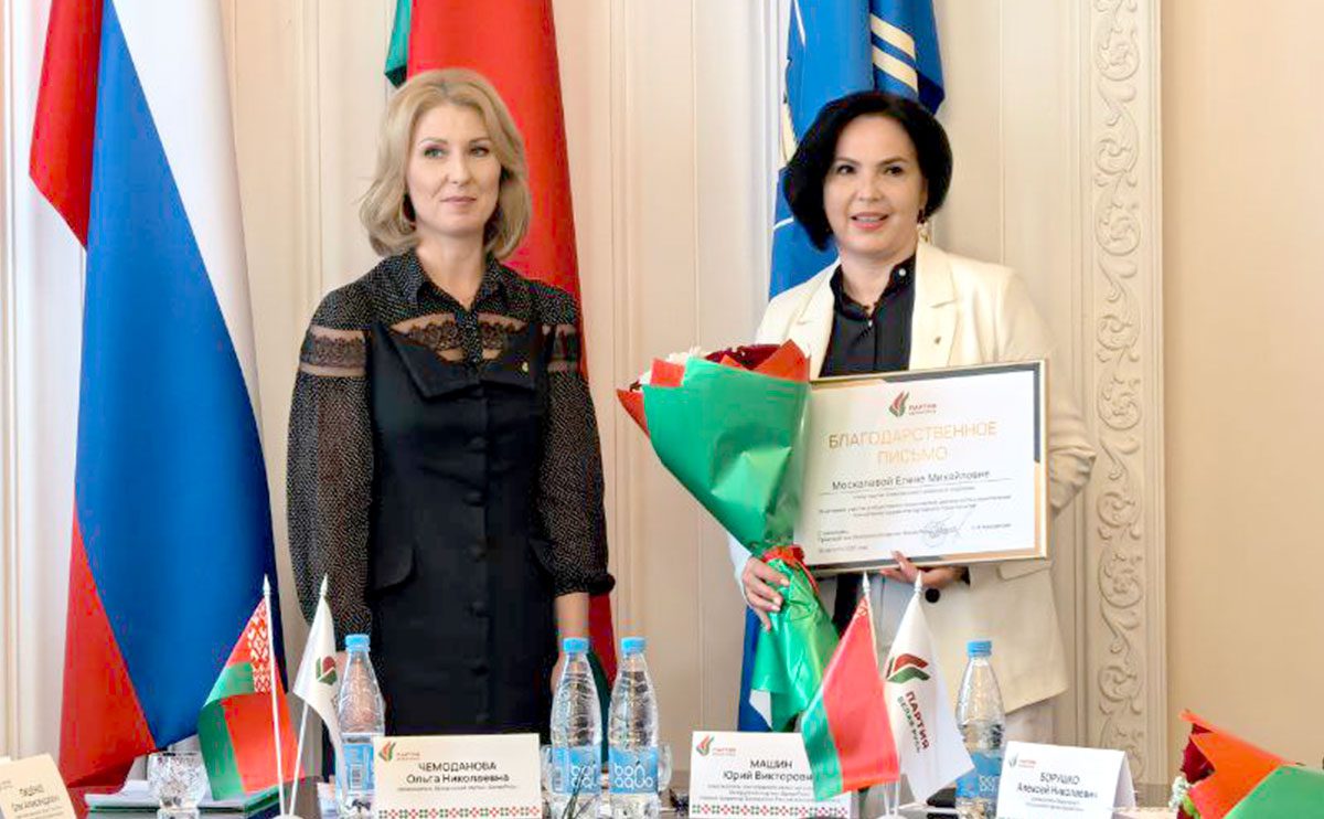 Председатель Климовичского районного отделения Белорусской партии «Белая Русь» Елена Москалева получила Благодарственное письмо от руководства партии за активное участие в общественно-политической деятельности и значительный личный вклад в развитие партийного строительства. Награду вручила председатель Белорусской партии «Белая Русь» Ольга Чемоданова в рамках семинара-практикума проекта «Партийная школа», который проходит 27–28 августа на Могилевщине.