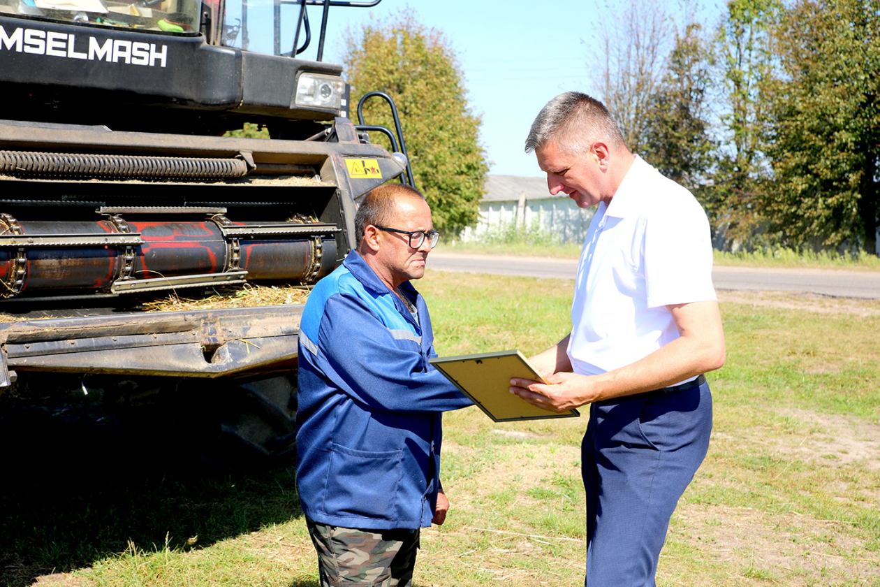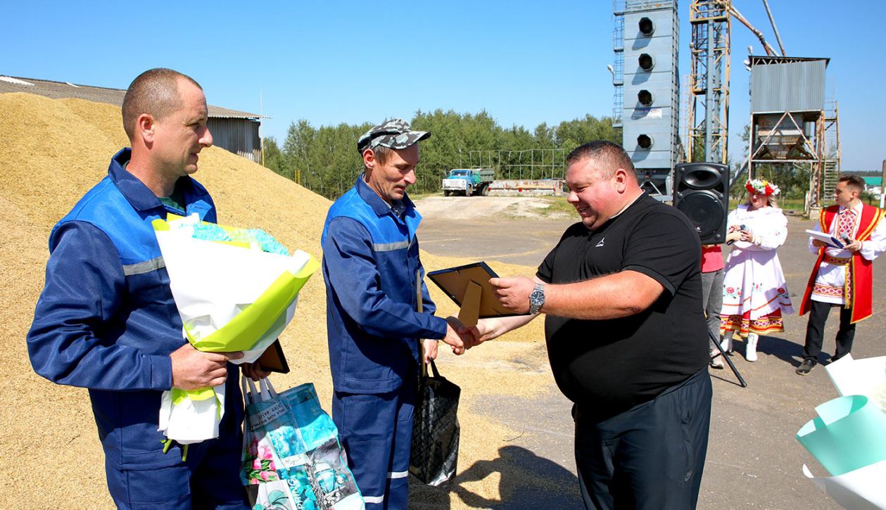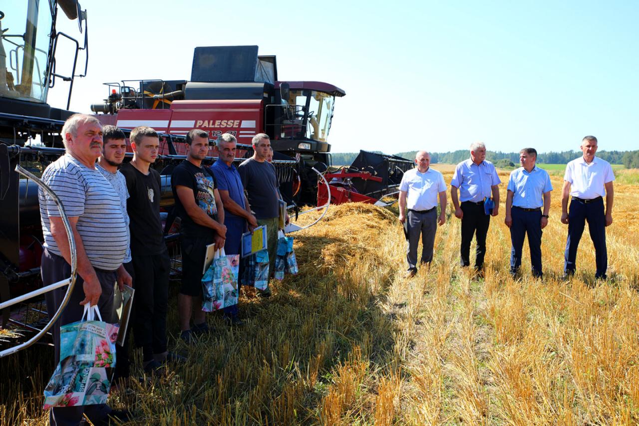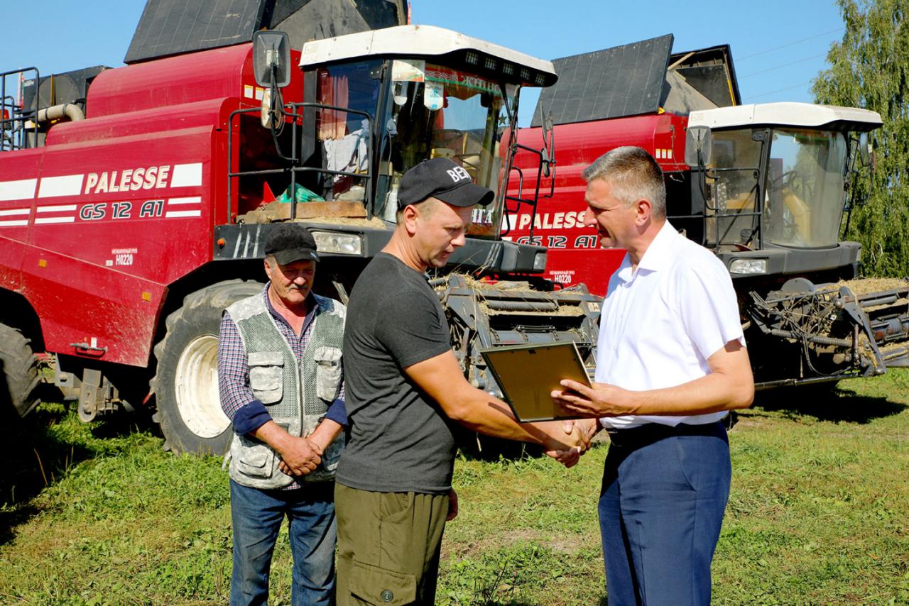 Жатва на Климовщине вышла на финишную прямую. Председатель райисполкома Виктор Пугач, первый заместитель председателя райисполкома, начальник райсельхозпрода Андрей Цыркунов и председатель райкома профсоюза работников АПК Александр Голочевский побывали в сельскохозяйственных организациях Климовщины и наградили лучших комбайнеров и водителей.