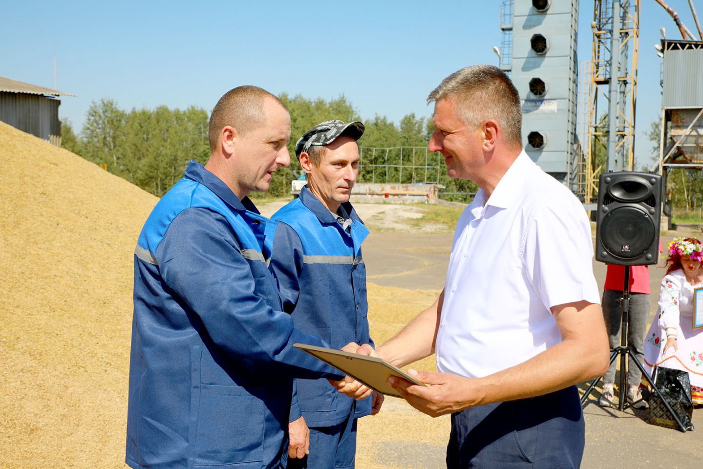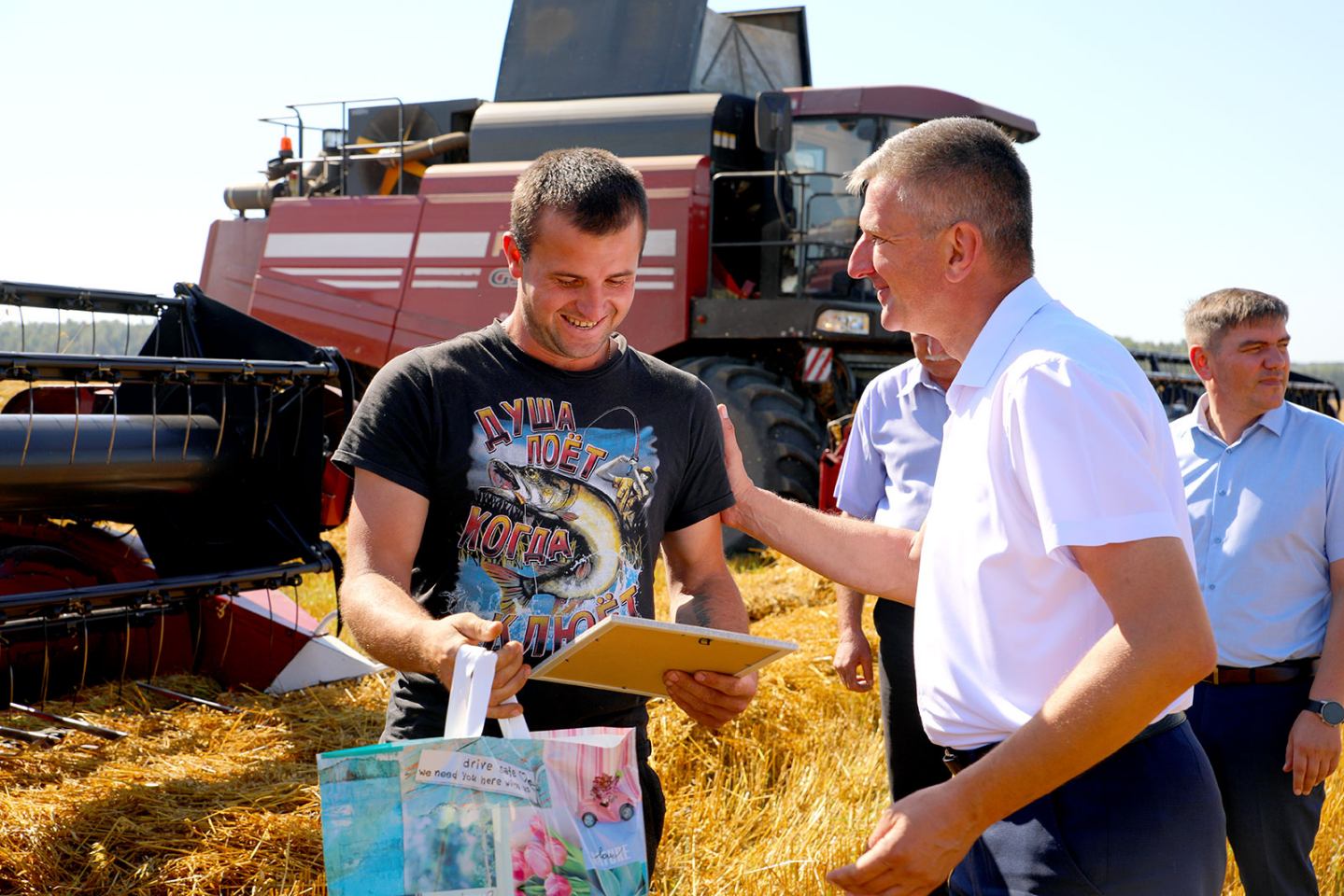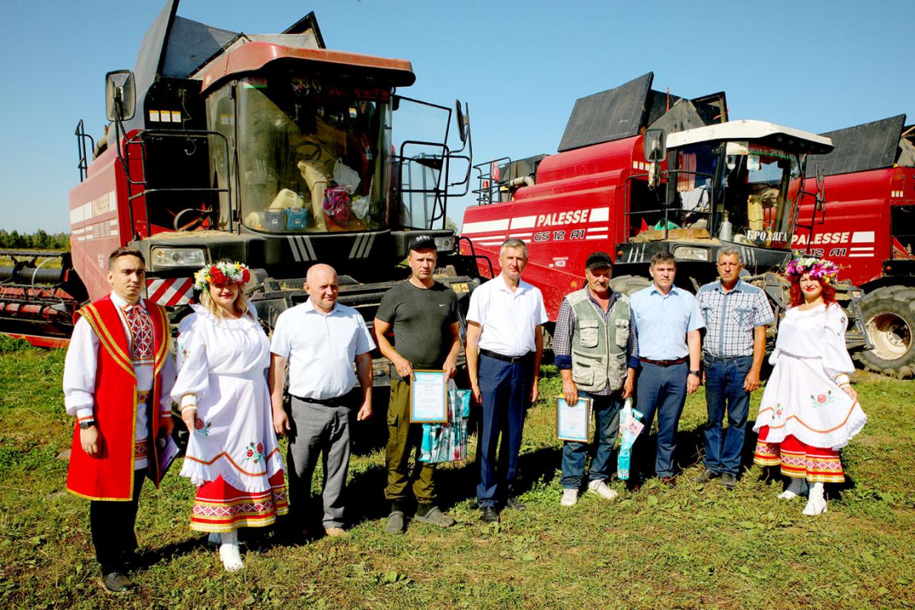Жатва на Климовщине вышла на финишную прямую. Председатель райисполкома Виктор Пугач, первый заместитель председателя райисполкома, начальник райсельхозпрода Андрей Цыркунов и председатель райкома профсоюза работников АПК Александр Голочевский побывали в сельскохозяйственных организациях Климовщины и наградили лучших комбайнеров и водителей.