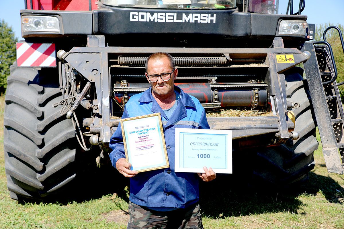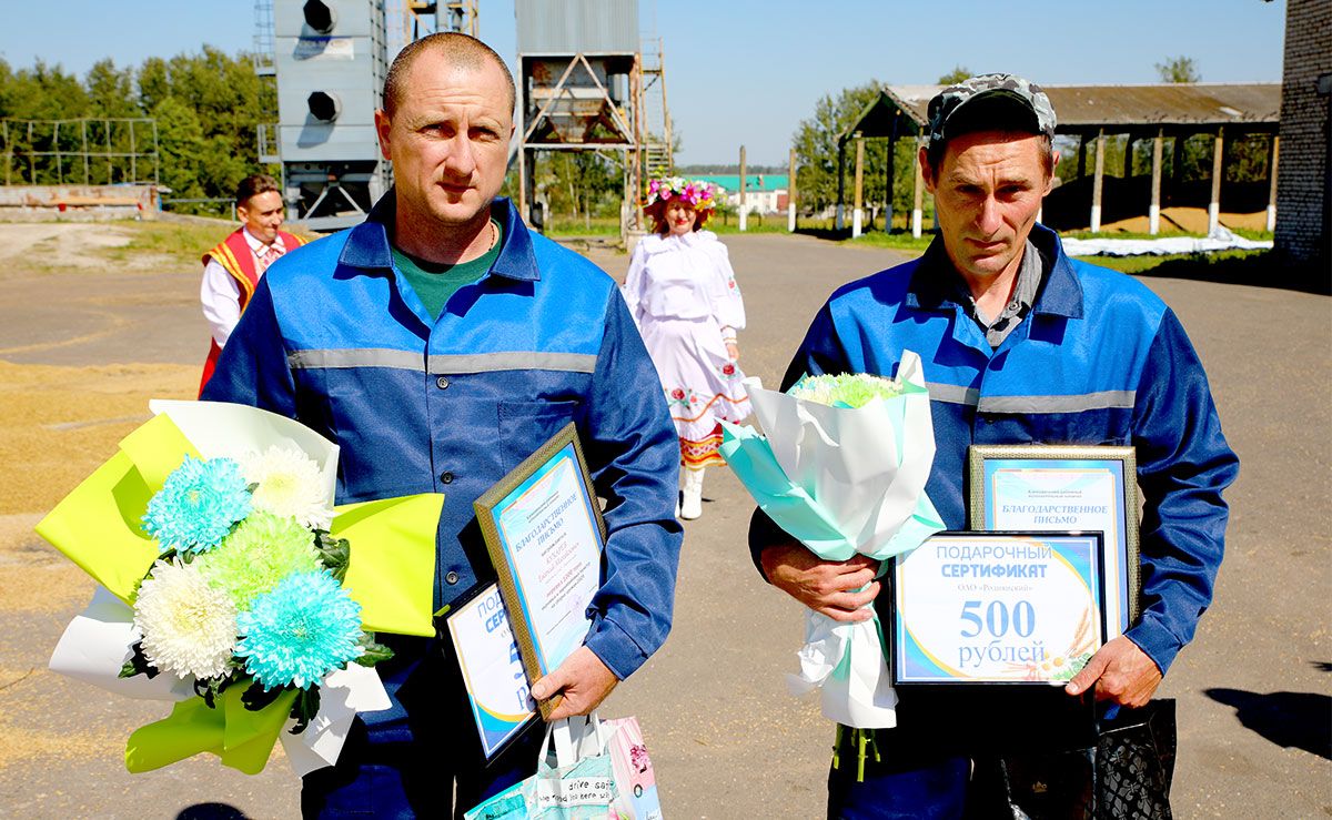 В ОАО «Макеевичи» благодарственные письма и ценные подарки вручались комбайнерам Владимиру и Михаилу Старовойтовым, Игорю и Евгению Тужиковым, водителю Александру Бамбизову.