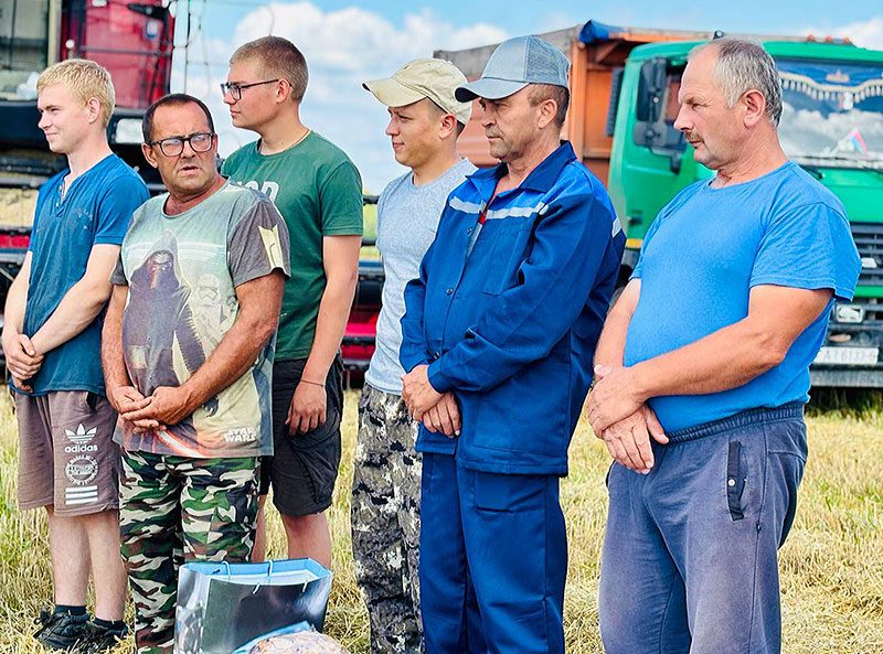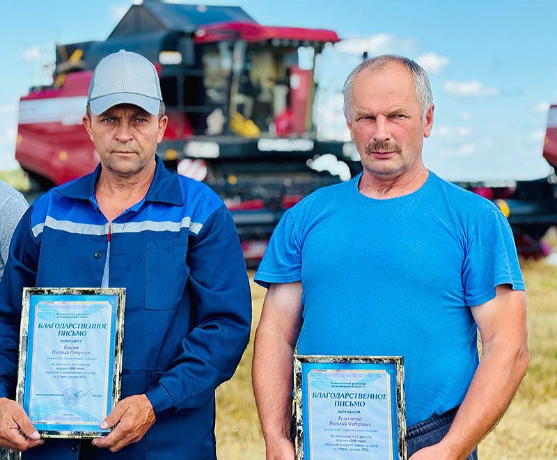 Так случилось и на этот раз. Николай Ковалев и Василий Романенко превзошли тысячный рубеж. С трудовой победой водителей приехали поздравить председатель райисполкома Виктор Пугач, первый заместитель председателя райисполкома — начальник райсельхозпрода Андрей Цыркунов, директор племзавода Артур Бастун, лидер районной профсоюзной организации работников АПК Александр Голочевский.