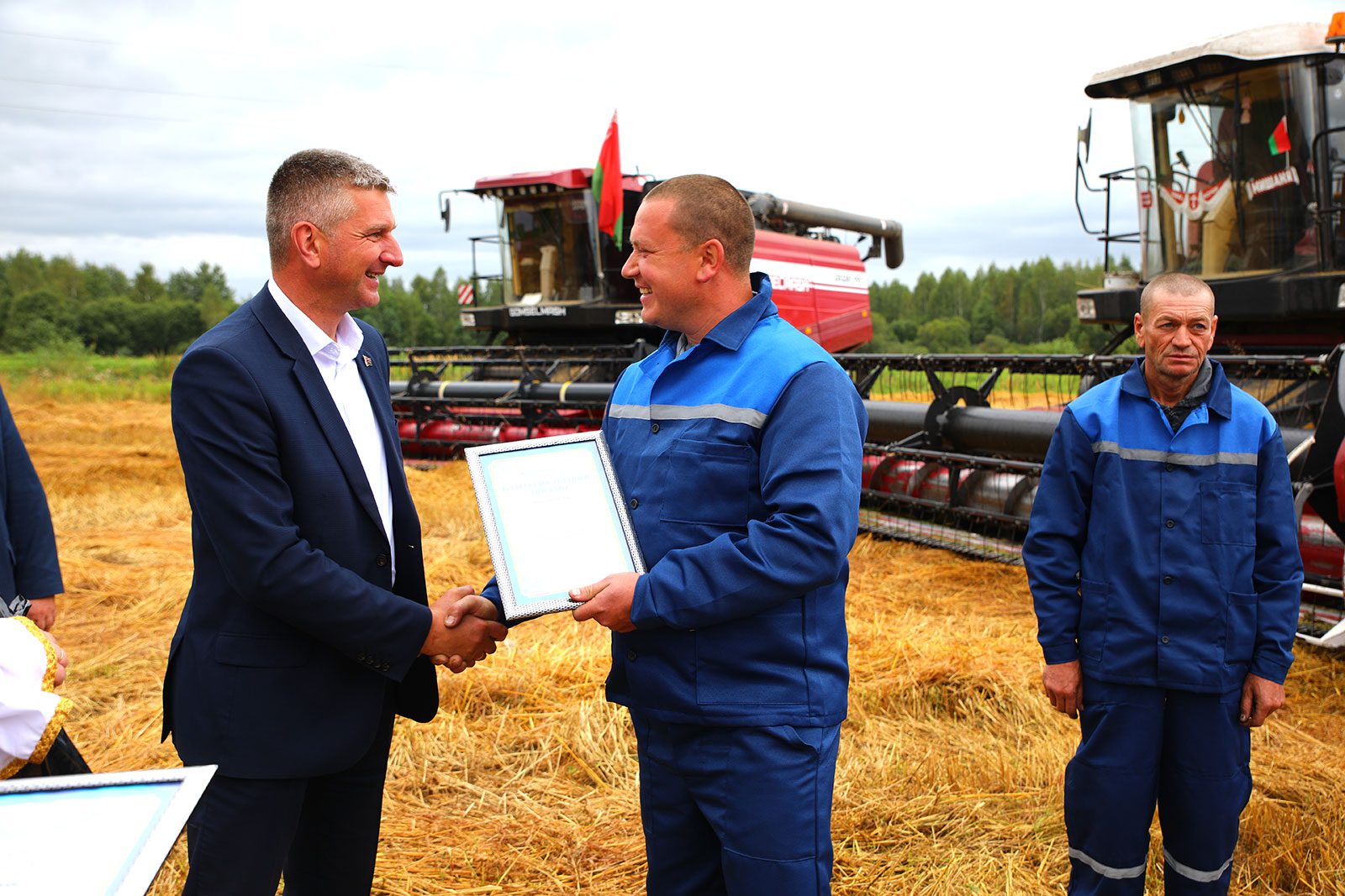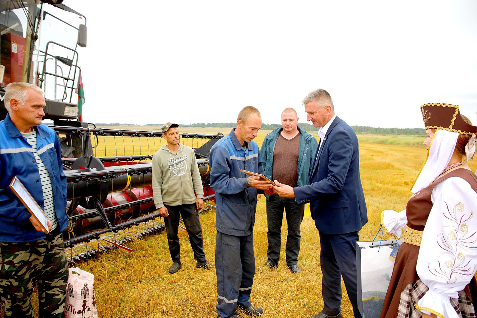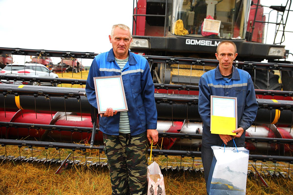 Ценными подарками комбайнеров наградили руководители предприятий Николай Прудников, Артур Бастун и Сергей Мартышевский.