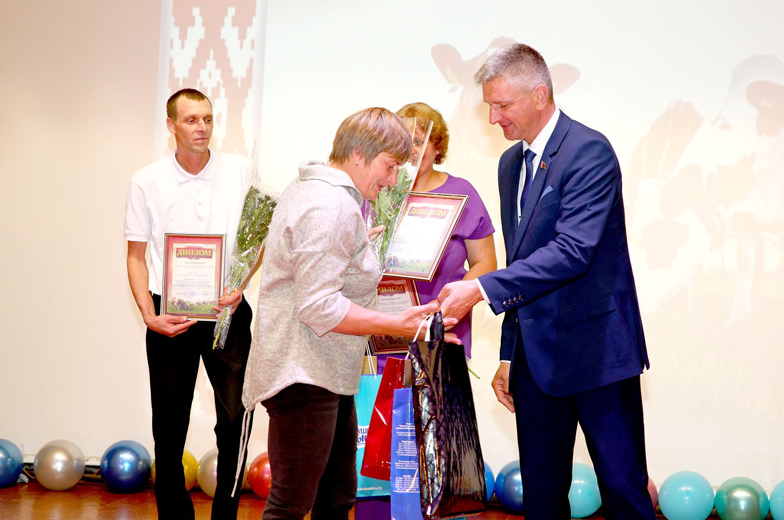 Церемонию награждения победителей конкурса провел председатель райисполкома Виктор Пугач. Первое и третье место в состязании заняли представители ОАО «Племенной завод «Тимоново» Алеся Бастун и Татьяна Траховцова. Второй результат показал представитель КСУП «Михалинский» Станислав Вебер.