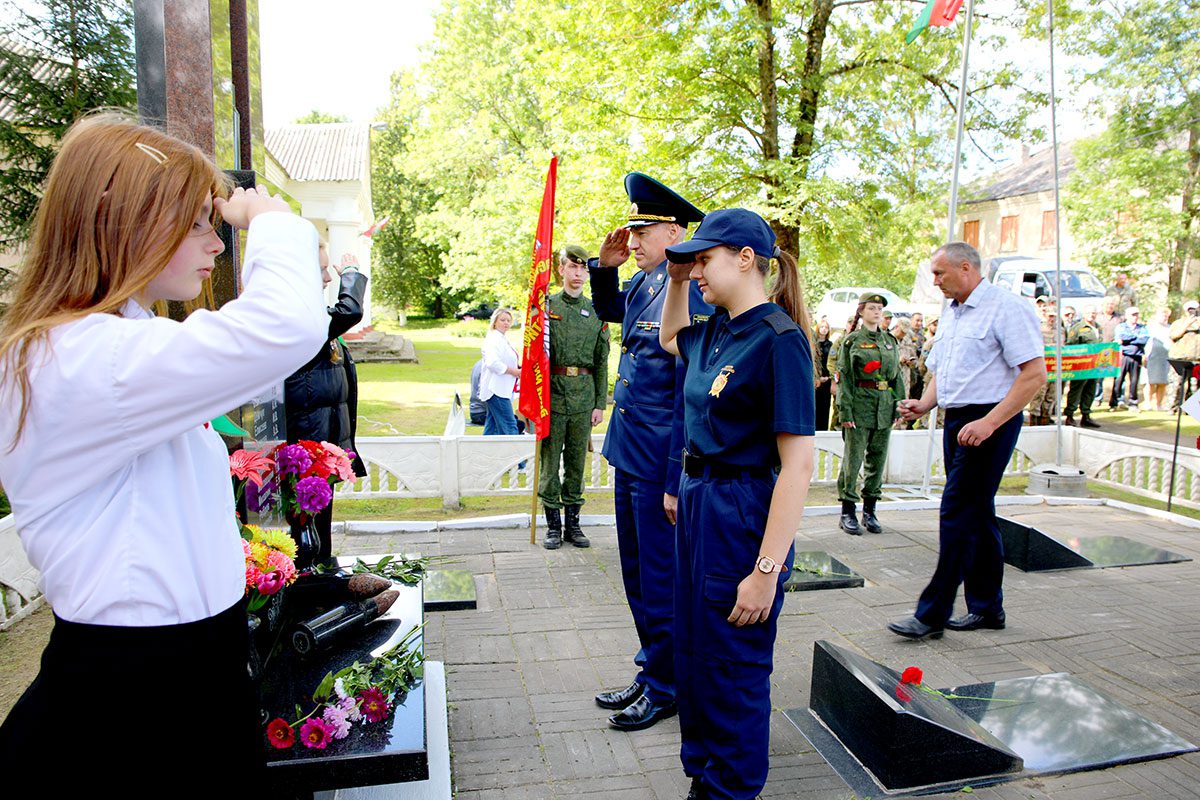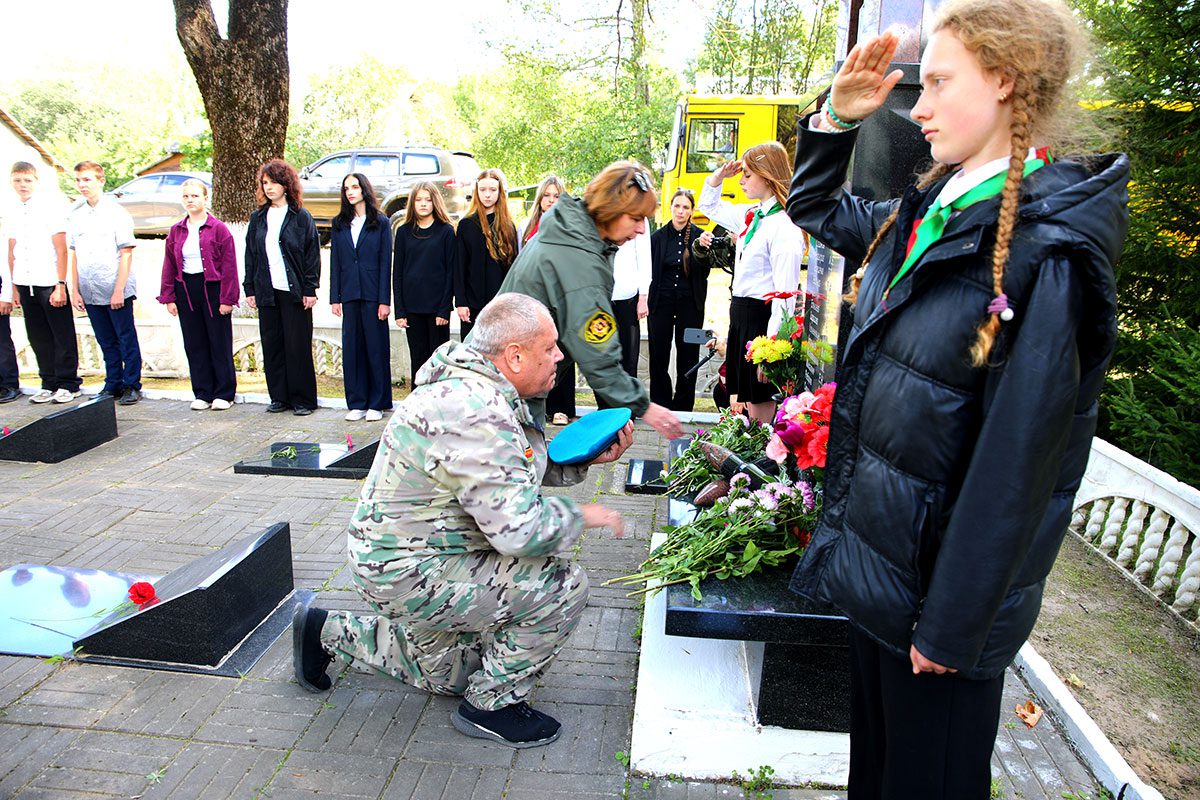 Участники торжественного открытия «Вахты Памяти» возложили цветы на братскую могилу и минутой молчания почтили память героев, погибших за Родину.