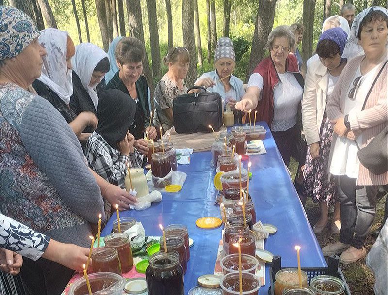 Обряд освящения воды и меда провел настоятель Милославичской и Звенчатской церквей отец Николай.