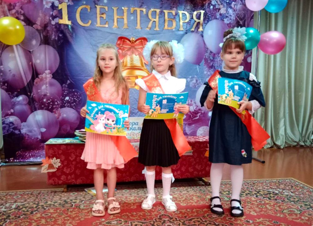 В подарок начинающие школьники получили красивые ленты первоклассника, подарки и воздушные шары — красный и зеленый. И первоклашки уверенно ответили, что такие же цвета у флага нашей страны. Татьяна Королева высказала напутствие юным школьникам, пожелала успешного пути по дороге знаний.