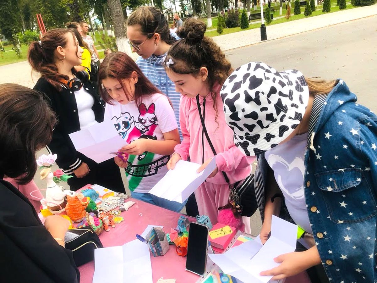 На сцене амфитеатра в парке Народного единства выступали юные артисты: пели, танцевали, радовали зрителей. По парку гуляли и развлекали зрителей ростовые фигуры мультяшных героев, в том числе легендарные смешарики. Возле амфитеатра талантливые педагоги дополнительного образования давали всем желающим мастер-классы и между делом рассказывали о направлениях деятельности своих объединений про интересам. Девочек было не оттащить от стола, где можно было заняться тем или иным рукоделием. А мальчишки пытались безошибочно пройти импровизированную полосу препятствии и обыграть в шашки педагога. Игр было организовано немало. Вокруг — смех, азарт, радость.