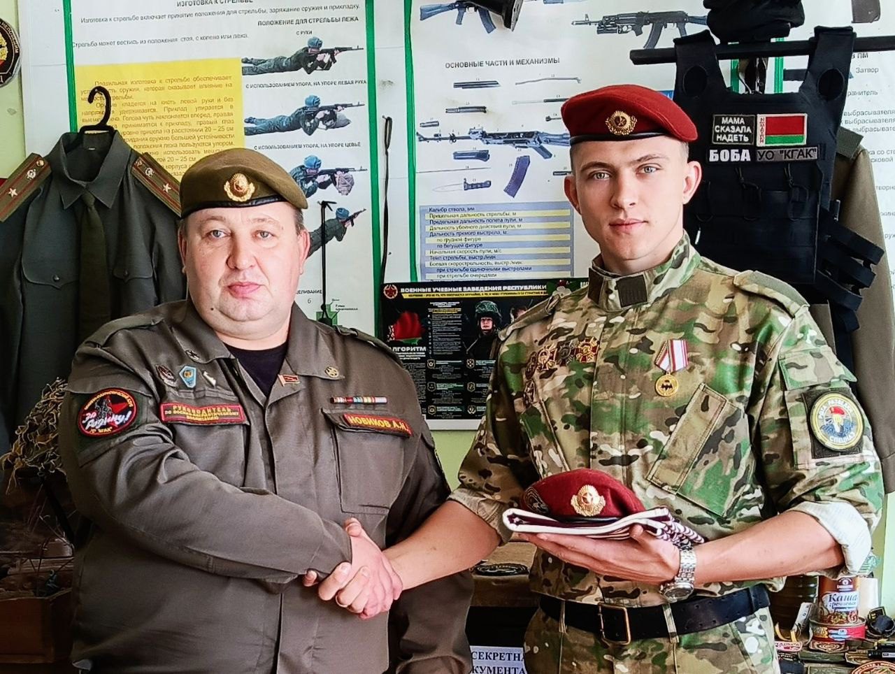 В кабинет допризывной подготовки Климовичского государственного аграрного колледжа был передан краповый берет — символ мужества и доблести. Его передал бывший учащийся колледжа Данила Грищенко, окончивший учебное заведение в 2020 году.