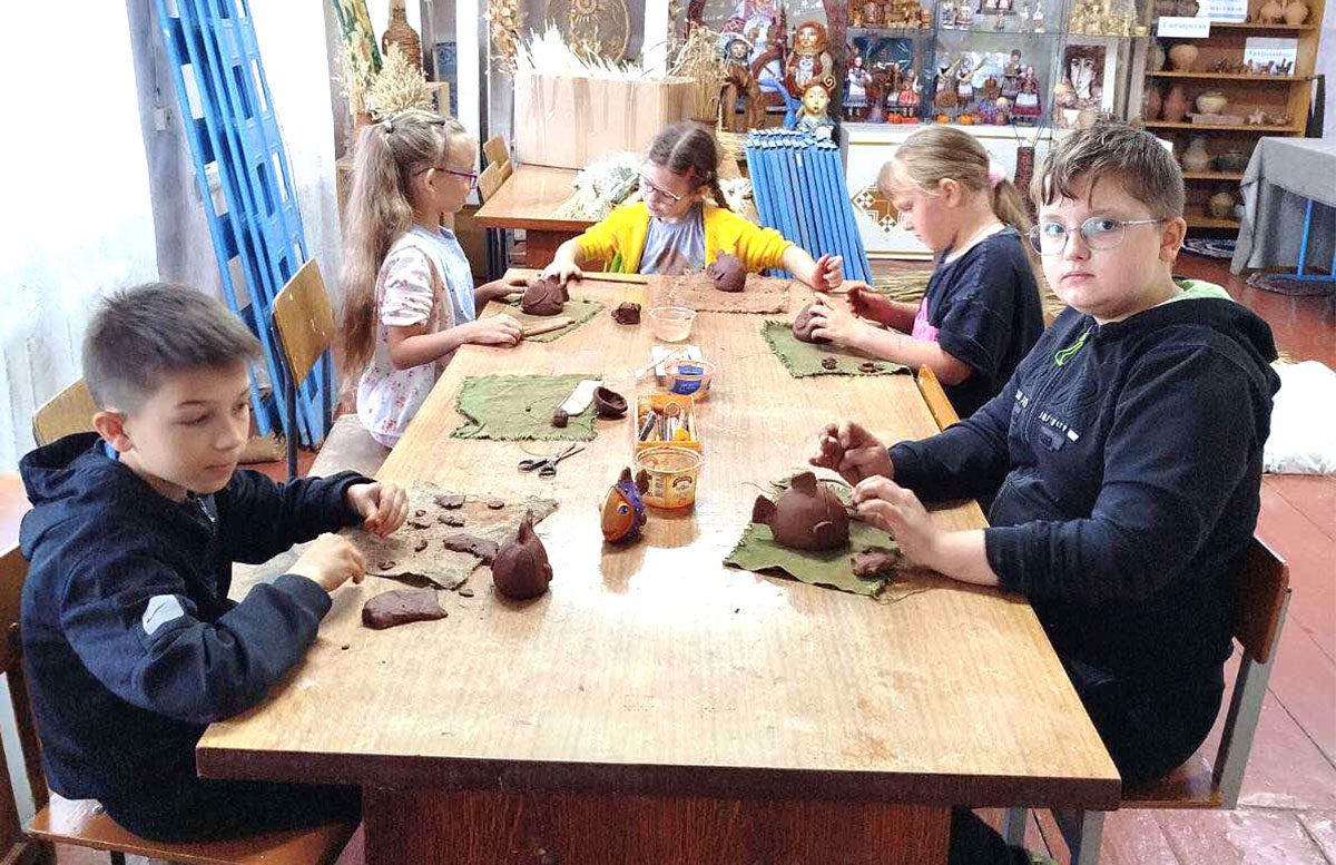 - Любительское объединение декоративно-прикладного творчества «Кладезь мастерства». Дети осваивают два основных традиционных ремесла: работа с соломкой и керамика. Учатся создавать картины-аппликации, объёмные фигурки и панно из соломенных лент. Также работают с глиной, изучая различные техники;