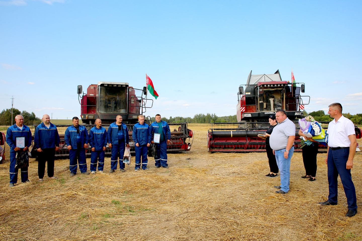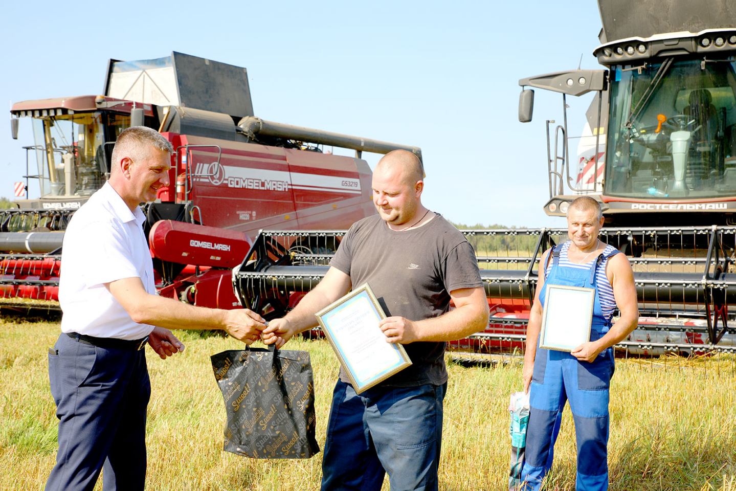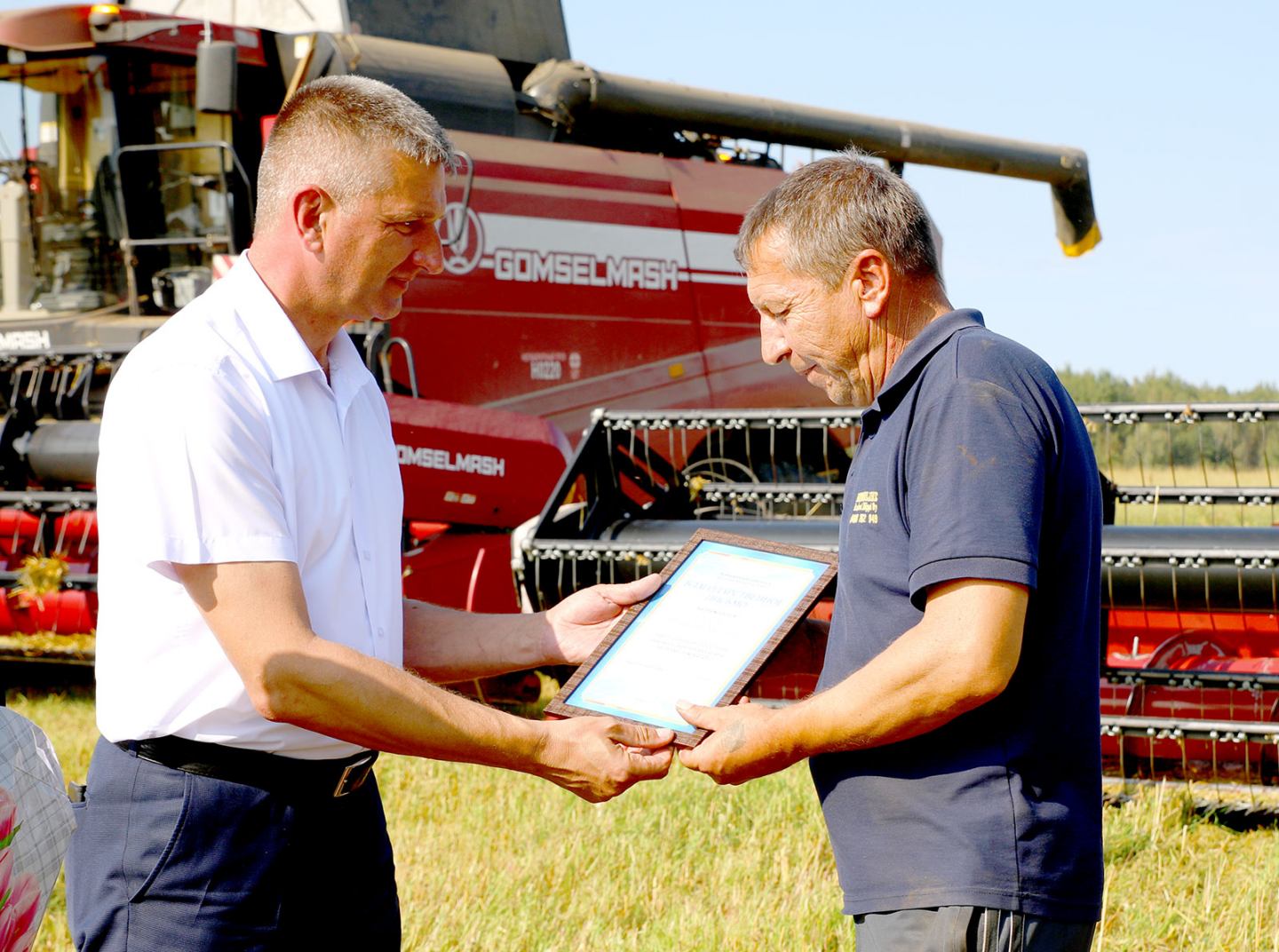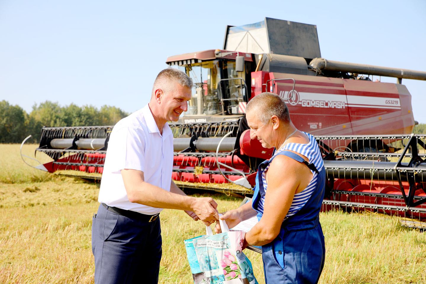 Глава Климовичского района Виктор Пугач и председатель райкома профсоюза работников АПК Александр Голочевский 5 сентября отправились в поля, чтобы воздать должное комбайнерам и водителям-тысячникам за их труд.