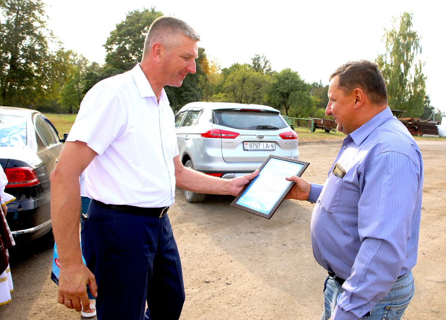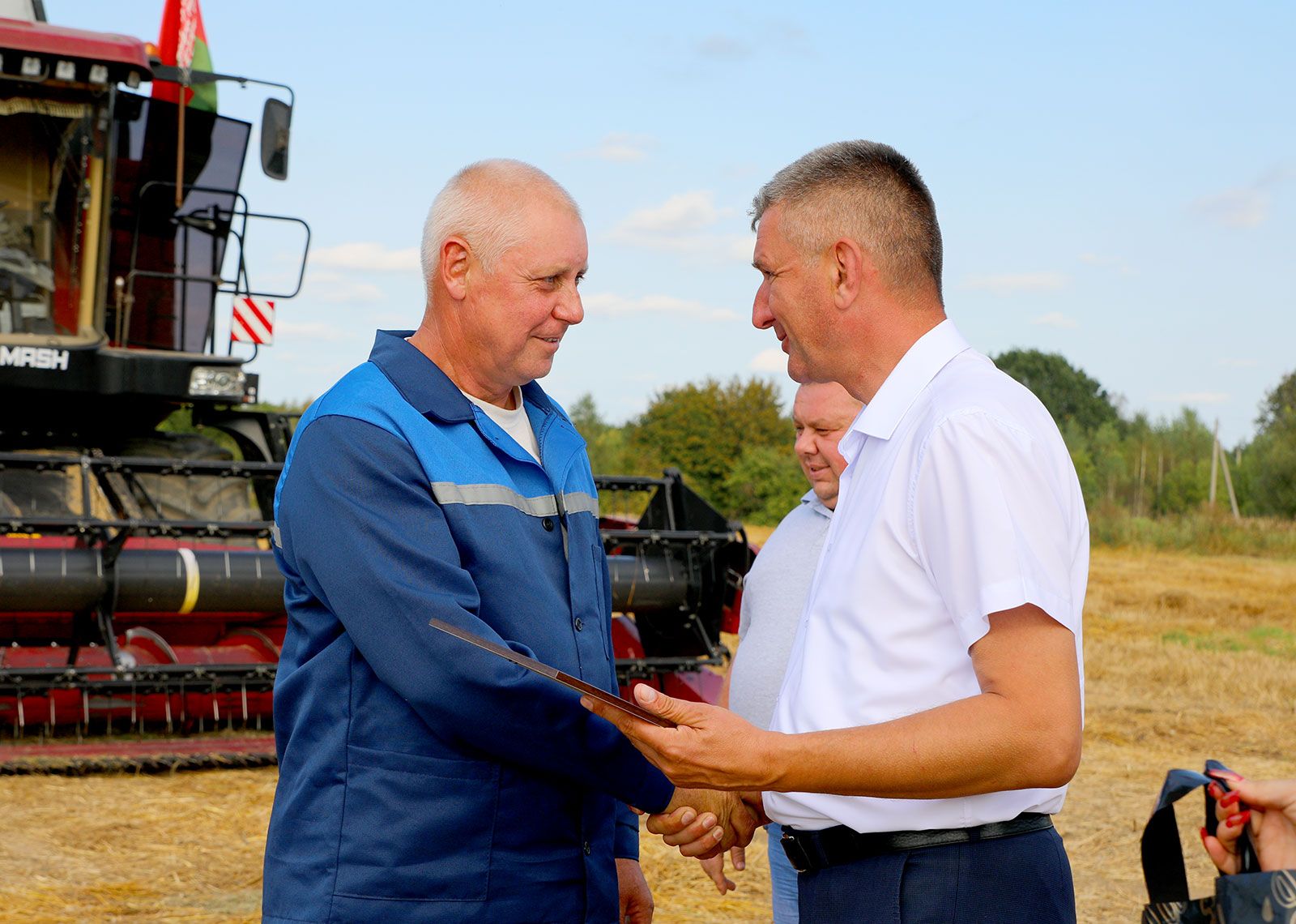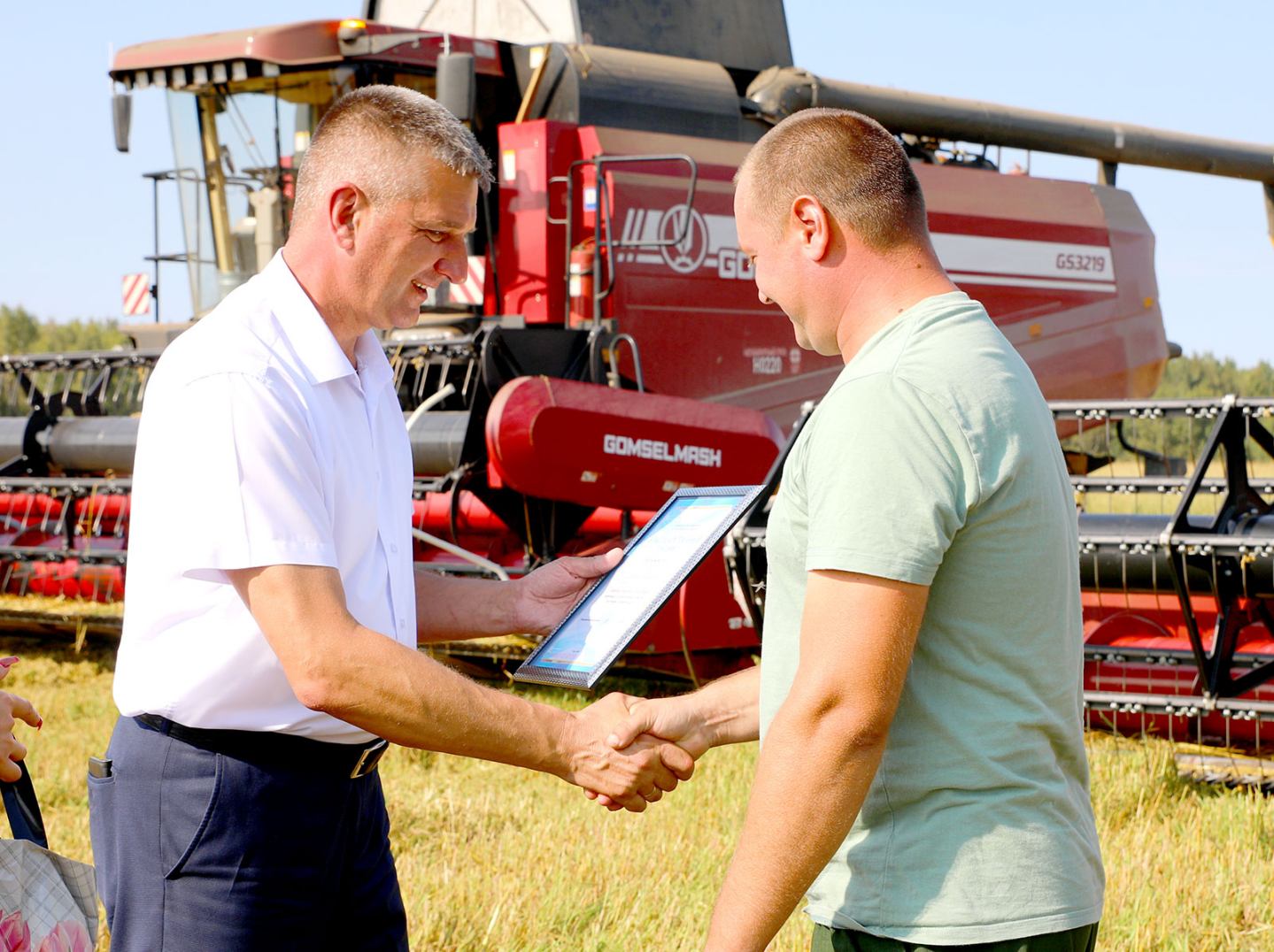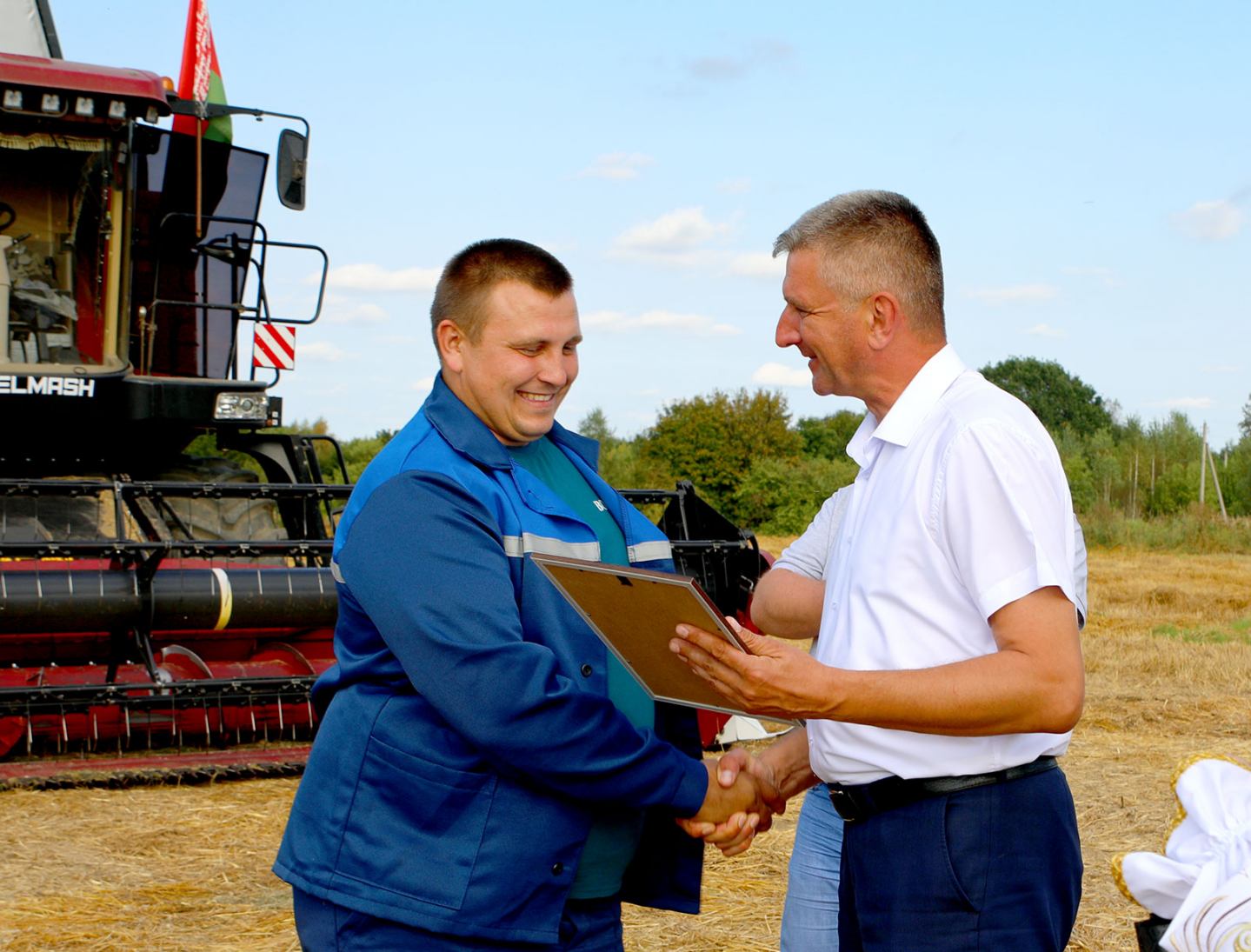Глава Климовичского района Виктор Пугач и председатель райкома профсоюза работников АПК Александр Голочевский 5 сентября отправились в поля, чтобы воздать должное комбайнерам и водителям-тысячникам за их труд.