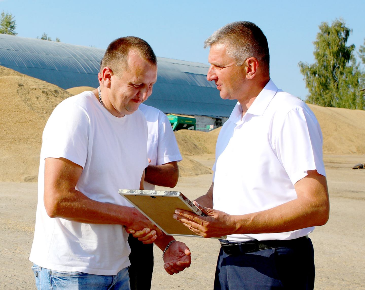 В ОАО «Роднянский» более тысячи тонн зерна намолотили комбайнеры Александр Ерохов и Илья Титков. Более тысячи тонн зерна нового урожая перевез водитель открытого акционерного общества Михаил Титков.